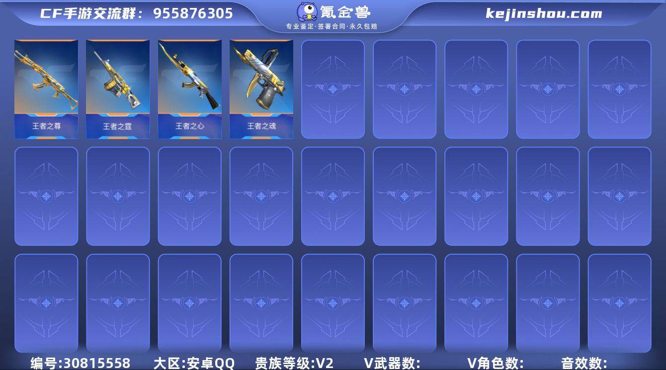 XXQZ55【V1 274V 234金V 王者之心/尊/影/蝶 仲达 幻神 光明神 逆骨 孟获 天神 星神 天龙-魔神 黑龙-墨子 TAC-晴舞全国第九】【等级】103【区服】手Q-安卓【金角色数】7【金武器数】244【金V角色】炽天使-X 零-新生 九安-X 审判者 瞳 萝拉 宋雨琦【金V武器】AK47-木兰 加特林-堡垒 马来剑-毁灭 唐刀-大唐荣耀 M4A1-夏清 M4A1-仲达 M4A1-海骑士 巴雷特-极光 沙鹰-修罗 改装GLOCK-木兰 98K-星神 M4A1-死神 AK47-猩红传说 M4A1-太白诗仙 SCAR-探星者 王者之尊 M4A1-赛博雷神 5-极光 9A91-天神 USP-太白诗仙 USP-神罚 CBJ-MS-毒蜂 AK47-火麒麟 巴雷特-毁灭 沙鹰-宇航兔兔 QBZ03-死神 M4A1-心动次元觉醒 AK47-轮回 09式狙-天神 USP-机械迷城 98K-黑骑士 QBB95-再战涿鹿 地狱烈炎 死神烟雾弹 手斧-机械迷城 AWM-天使 AK47-塔罗牌觉醒 KSG-极光 蝴蝶刀-天神 血月 AA12-火药觉醒 AN94-赳赳秦师 M14EBR-玄武 47-鼓龙 AUG-机械纪元 AK47-血武士 擎天 AWM-指南针 M4A1-猎神 麒麟刺 VSK-94-九黎兵主觉醒 嗜血金鲨 M16-恶魔 AK47-谜城烟火 CZ75-策 AWM-指南针觉醒 雷神手雷 雷神闪光弹 雷神烟雾弹 地狱火 QBZ03-金色蔷薇 尼泊尔-冰锋觉醒 M4A1-冰锋觉醒 高爆手雷-无限 HK417-朱雀 沙鹰-冰锋觉醒 M14EBR-暗夜觉醒 激昂霸王枪 AWM-天龙 M4A1-雷神 M4A1-破空冰刃 闪光弹-神工天巧 马来剑-耀金伯爵 气勇胆烈戟 AK47-黑武士觉醒 龙爪手-鼓龙 QBZ191-封神榜 屠龙 破邪蛇棍觉醒 蟒蛇-鼓龙 柯尔特-仲达 M14EBR-拂影 沙鹰-修罗 QBZ19-天使 气手枪-血月 剑齿虎-炫彩 81式-光明之神 HK416-极光 QBZ03-金色蔷薇 炽芒蝶刃 M4A1-龙血 SCAR-心动PICK AK4
