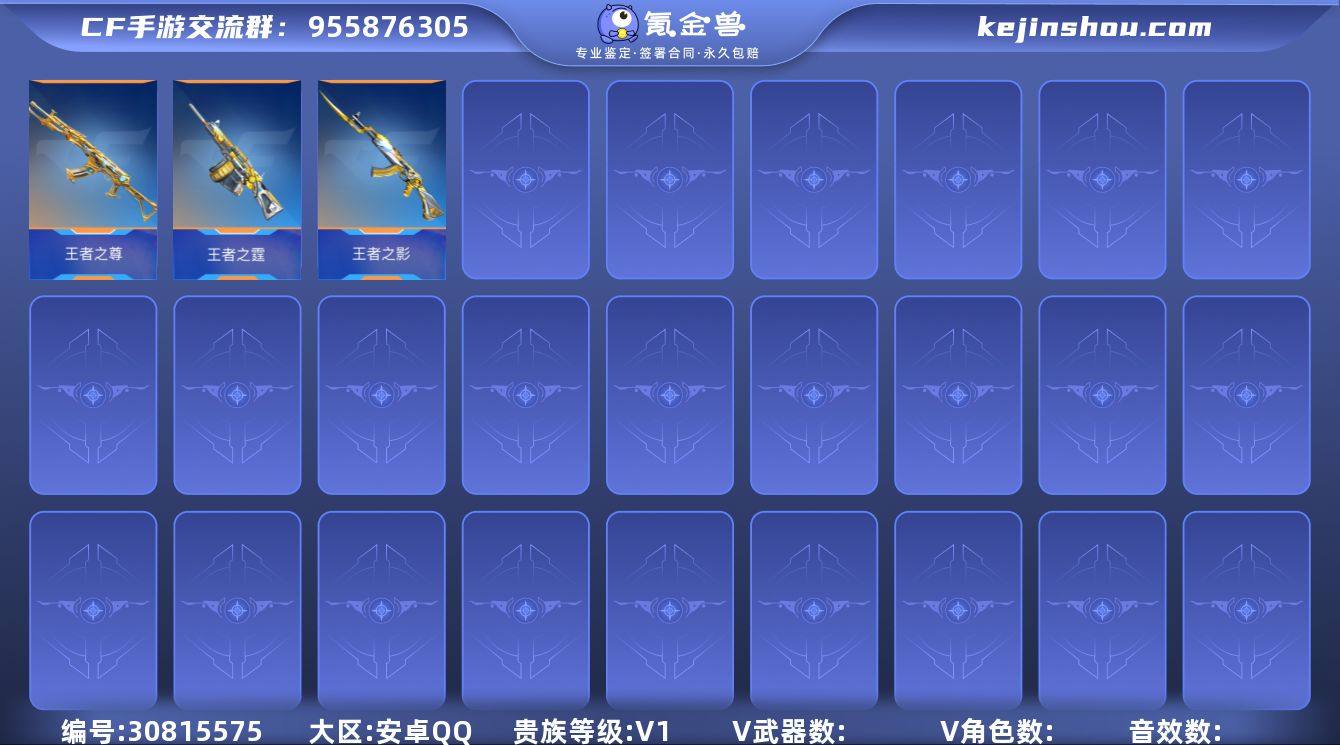 UCFM126 安卓Q 97武器16角色 王者之影 王者之尊 王者之霆 M200-幻神 王者之霆一冰霜奇迹 M4A1-雷神 M4A1-赛博雷神 可二次 枪战王者账号 以实际内容为准 限免武器有少量偏差 介意勿拍
