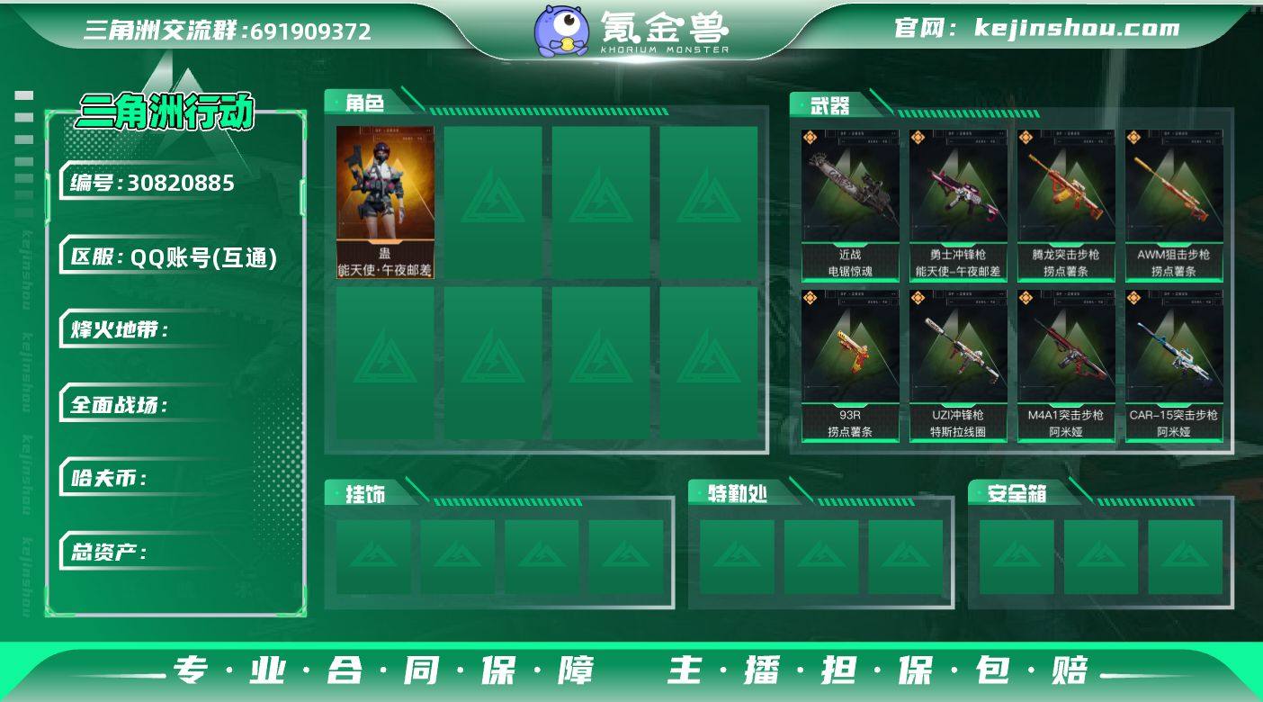 总资产46.5M/现金964062/训练中心满级,潜水中心满级/电锯惊魂/深蓝-不破誓约,蛊-能天使·午夜邮差/M4A1突击步枪-阿米娅,CAR-15突击步枪-阿米娅,ASh-12战斗步枪-鹅鸭杀,QCQ171冲锋枪-鹅鸭杀,QJB201轻机枪-鹅鸭杀,S12K霰弹枪-电锯惊魂,M14射手步枪-电锯惊魂,AK-12突击步枪-特斯拉,UZI冲锋枪-特斯拉线圈,SR-3精凑突击步枪-特斯拉线圈,腾龙突击步枪-捞点薯条,AWM狙击步枪-捞点薯条,93R-捞点薯条,Vector冲锋枪-能天使-午夜邮差,勇士冲锋枪-能天使-午夜邮差,M250-骑士之心,SCAR-H战斗步枪-启航/存.20-3,编号:ZPYNN18