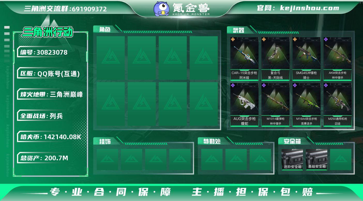 烽火等级60级+总资产200m+142m纯币+4体力2负重6仓库+部门(1+1+2+1+1)+4格安全箱,找回包赔,安全箱及段位因赛季原因发生变化,以上号为准