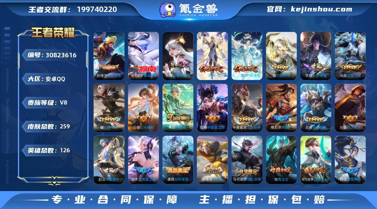 AHC40586,,对抗路40段/1星传说,,,安卓Q-V8-至尊星耀II段位-126英雄-259皮肤-1典藏皮肤-1珍品传说-16传说-82史诗 【英雄全皮】:橘右京全皮,戈娅全皮 【荣耀典藏】:孙悟空全息碎影 【珍品传说】:马可波罗怪盗基德 【传说皮肤】:司空震愿照山河定,妲己愿照众生和,云缨幻光神枪,桑启鸣野蒿,花木兰燃星之曲,吕布怒海麟威,橘右京枫霜尽,马超无双飞将,赵云淬星耀世,镜炽阳神光,虞姬启明星使,曜云鹰飞将,李信一念神魔,刘备时之恋人,干将莫邪久胜战神,貂蝉仲夏夜之梦 【限定皮肤】:蒙犽顽岩魄,蔡文姬夏日便利店,虞姬夏日便利店,姜子牙天穹之誓,杨戬破阵退雄兵,李白谪仙醉月,狄仁杰阴阳师,赵云皇家上将,孙尚香蔷薇恋人,高渐离死亡摇滚,钟无艳超时空战士,芈月幻夜卜梦,元歌云间偶戏,元歌无心,甄姬落雪兰心,马可波罗暗影游猎,马可波罗山海玄木吟,狄仁杰魔术师,狄仁杰万华元夜,达摩沙漠行僧,项羽海滩派对,老夫子醍醐杖,老夫子航海奇遇记,关羽百相守梦,程咬金演武夺筹,韩信傲雪梅枪,王昭君午后时光,兰陵王金庭之子,花木兰默契交锋,花木兰燃星之曲,橘右京枫霜尽,孙悟空孙行者,李元芳匿光侦查者,李元芳云中旅人,虞姬启明星使,钟馗驱傩正仪,雅典娜黎明之约,鬼谷子原初探秘者,鬼谷子五谷丰年,黄忠火炮绅士,铠青龙志,百里玄策原初追逐者,百里守约朱雀志,弈星混沌棋,梦奇顽趣,沈梦溪大漠名商,明世隐疑决卦,裴擒虎李小龙,裴擒虎擒涛扼浪,狂铁电玩高手,云中君纤云弄巧,嫦娥暖冬兔眠,西施玲珑珍味,鲁班大师探海日志,桑启海盐诗旅,暃星界游侠,戈娅驭风魔法,阿古朵江河有灵,张良古海寻踪,蒙恬荣光圣徽,高渐离燃音魔法,妲己灵卜魔法,鬼谷子天穹祈灯,姬小满妄想食味,沈梦溪龙舞盛年,鲁班七号蔬乡物语,李元芳蔬乡物语,刘邦剑破天穹,程咬金群星...