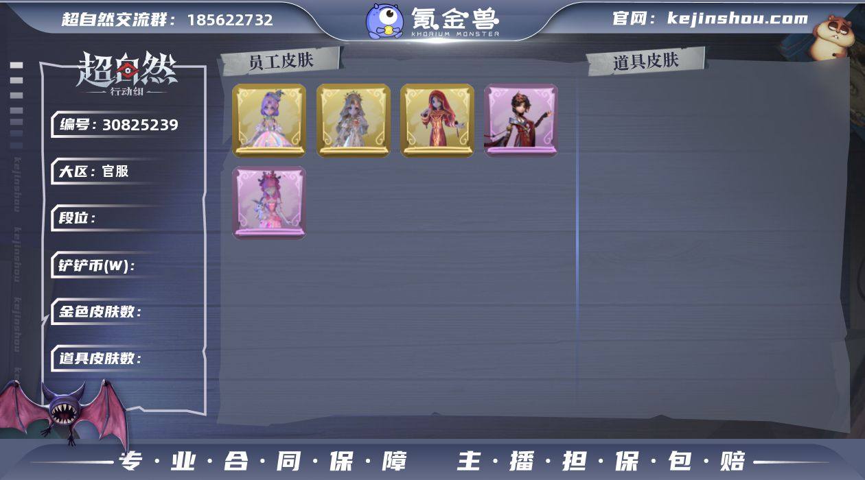 段位超自然传说 3金9紫 遗失的童话 圣光之谕 镜花辞 呱呱雨衣 罗丽 霓裳踏雪 丝缕哀歌 绣春逍影 莓果陷阱 情公主 水王子 超自然行动组账号