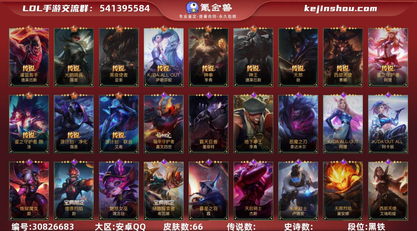 AM68英雄-66皮肤 【神话皮肤】:夜星流火 金克丝 【传说皮肤】:源计划:净化 薇恩,光明哨兵 薇恩,K/DA ALL OUT 萨勒芬妮,黑夜使者 亚索,星之守护者 阿狸,天煞 劫,星之守护者 陨 洛,神拳 李青,灌篮高手 德莱厄斯,神王 德莱厄斯,源计划:联合 艾希,西部天使 赛娜 【史诗皮肤】:探梦奇旅 艾克,无限烈焰 黛安娜,恶魔之刃 泰达米尔,礼物选好了吗? 布隆,K/DA ALL OUT 阿卡丽,星之守护者 萨勒芬妮,K/DA ALL OUT 阿狸,幻梦甜心 阿狸,未来战士 卢锡安,小蜜蜂 提莫,秘旅探索者 希瓦娜,炼狱魔女 蔚,燎原烈焰 蔚,暮星之羽 霞,福牛守护者 嘉文四世,泳池派对 李青,地下拳王 李青,霸天巨兽 墨菲特,暗星 韦鲁斯,西部天使 艾瑞莉娅,战斗学院 卡特琳娜,星域学者 索拉卡,天启骑士 杰斯,魅惑女巫 薇古丝 【赛季皮肤】:s5绯金魅影,s7绯金战斧,s8绯金鮫灵,s9王牌舰长,s10王牌上将,s11王牌司令,s12龙冕先锋,s13龙冕御盾,s16冠翎飞行员,S18冠翎巨神像 【其他皮肤】:脏兮兮 努努和威朗普,斗战胜佛 孙悟空,时之砂 艾克,龙冕先锋 赵信,龙冕御盾 布隆,王牌舰长 崔斯特,绯金魅影 伊芙琳,银色之牙 阿卡丽,皇家守卫 菲奥娜,擂台皇帝 布里茨,西部牛仔 亚索,腥红之月 亚索,兔宝宝 提莫,熊猫 提莫,缪斯女神 娑娜,女警官 蔚,孤胆英豪 嘉文四世,王牌上将 嘉文四世,冠翎飞行员 库奇,泳池派对 蒙多医生,单身贵族 内瑟斯,暗影 易,绯金战斧 德莱文,王牌司令 艾希,无畏号 墨菲特,黑曜石守护者 墨菲特,绯金鲛灵 娜美,光执事 伊泽瑞尔,冠翎巨神像 加里奥,腥红之月 鬼武者 慎