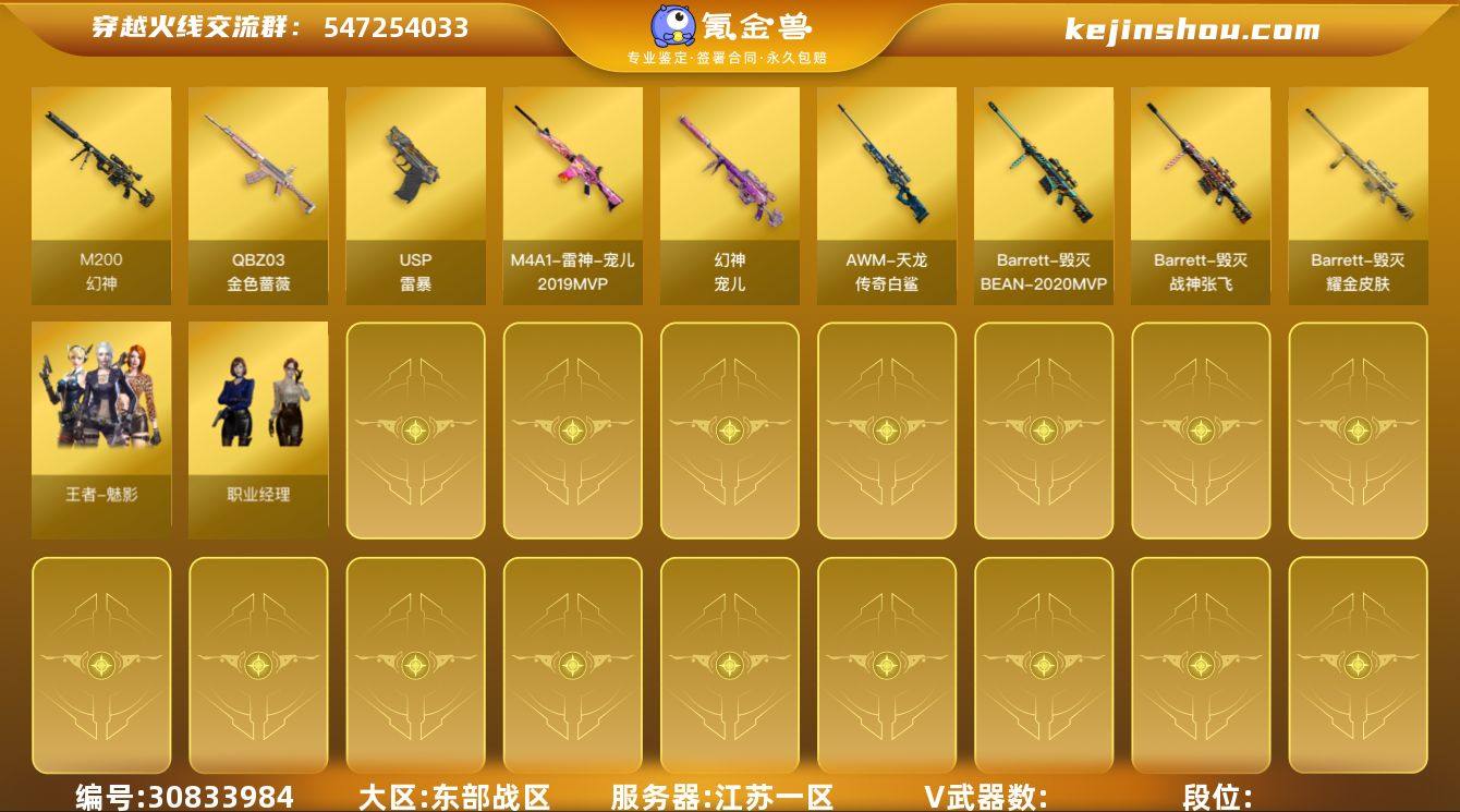 东部江苏一区/可二次可排位/51v/幻神2皮-幻神宠儿-幻神黄忠/5修罗+USP雷暴×2/QBZ金色蔷薇/炼狱+斯泰尔蝴蝶4烈龙/4雷暴套/雷神音效卡+雷神-宠儿-2019MVP/毁灭-BEAN-2020MVP+战神张飞+毁灭耀金/天龙-传奇白鲨/四防王者魅影+四防职业经理/详情看图