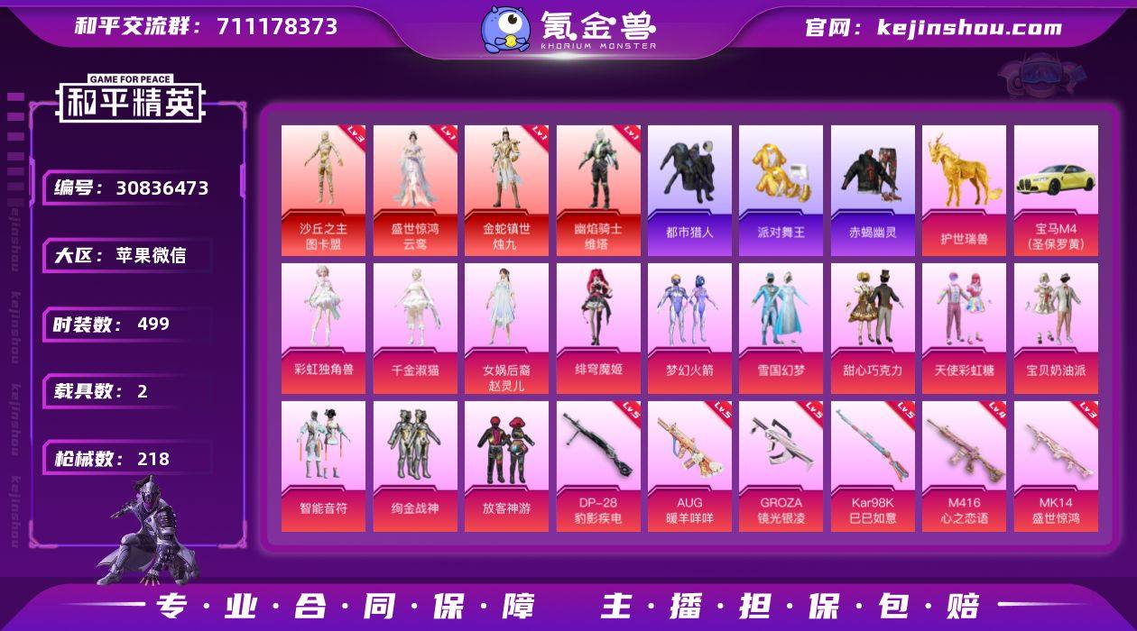 YM9187-4红12粉10特2车/3级图卡盟/云鸾/维塔/烛九/雪国/金鞋/都市/赤蝎/放客/赵灵儿/巧克力/蓝螳螂/宝马m4/M416墨龙九天/实名: 可修改 时装数: 499 载具数: 2 枪械数: 218 战备数: 161 神级装扮: 沙丘之主-图卡盟,幽焰骑士-维塔 ,金蛇镇世-烛九,盛世惊鸿-云鸾 热门装扮: 梦幻火箭(新101),甜心巧克力,宝贝奶油派,天使彩虹糖,放客神游,鹰眼刺客,智能音符,都市猎人,绚金战神,雪国幻梦,女娲后裔-赵灵儿,赤蝎幽灵,派对舞王,千金淑猫,彩虹独角兽,绯穹魔姬 载具: 宝马M4(圣保罗黄),护世瑞兽,僚机-圣域龙宝 稀有枪皮: M416心之恋语,M416墨龙九天,AKM-幽焰骑士,GROZA-镜光银凌,Kar98K-巳巳如意,SCAR-L金蛇镇世,MK14-盛世惊鸿,AUG-暖羊咩咩,Kar98K-圣域龙灵,DP-28-豹影疾电