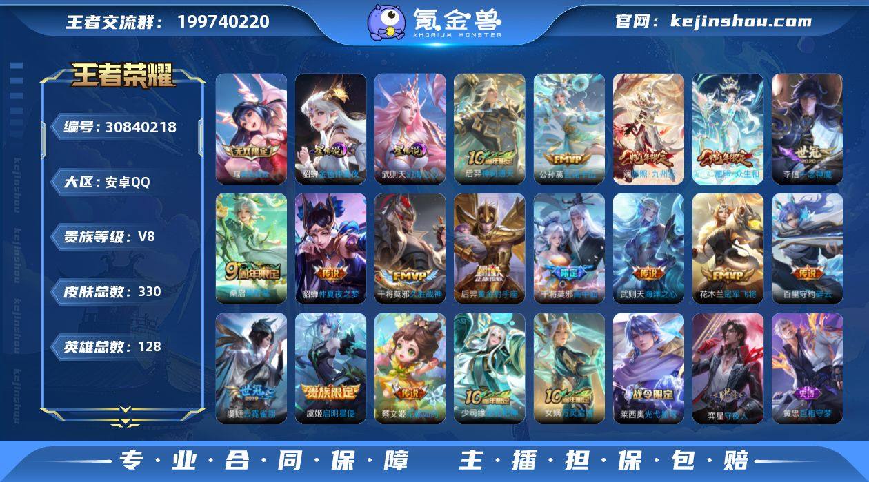 HC11495,女号/2星元,安卓Q-V8-最强王者段位-128英雄-329皮肤-1典藏英雄-1无双-16传说-100史诗 【英雄全皮】:阿古朵全皮,戈娅全皮,空空儿全皮,影全皮 【荣耀典藏】:武则天英雄 【无双皮肤】:瑶真我赫兹 【传说皮肤】:后羿神树通天,公孙离云诺千山,妲己愿照众生和,澜愿照九州拓,桑启鸣野蒿,干将莫邪画中仙,百里守约碎云,蔡文姬花朝如约,虞姬启明星使,李信一念神魔,干将莫邪久胜战神,虞姬云霓雀翎,花木兰冠军飞将,后羿黄金射手座,貂蝉仲夏夜之梦,武则天海洋之心 【限定皮肤】:大乔绒语心约,姜子牙天穹之誓,杨戬破阵退雄兵,李白谪仙醉月,狄仁杰阴阳师,赵云皇家上将,墨子神迹守卫,孙尚香蔷薇恋人,庄周高山流水,高渐离玩趣恶龙,扁鹊奇幻香踪,元歌无心,夏侯惇朔风刀,马可波罗逐梦之星,马可波罗暗影游猎,马可波罗山海玄木吟,狄仁杰魔术师,狄仁杰万华元夜,达摩沙漠行僧,项羽海滩派对,老夫子醍醐杖,老夫子航海奇遇记,程咬金演武夺筹,韩信逐梦之影,兰陵王金庭之子,李元芳银河之约,李元芳云中旅人,虞姬启明星使,钟馗驱傩正仪,杨玉环遇见飞天,杨戬潮玩骑兵,女娲朔望之晖,干将莫邪冰霜恋舞曲,干将莫邪胡桃夹子,干将莫邪画中仙,鬼谷子原初探秘者,鬼谷子五谷丰年,苏烈千军破阵,弈星混沌棋,梦奇顽趣,沈梦溪大漠名商,明世隐疑决卦,裴擒虎李小龙,裴擒虎擒涛扼浪,瑶山海碧波行,云中君纤云弄巧,伽罗天狼溯光者,上官婉儿梁祝,嫦娥拒霜思,嫦娥暖冬兔眠,西施玲珑珍味,鲁班大师探海日志,桑启海盐诗旅,戈娅驭风魔法,艾琳流音漫舞,司空震地狱燃心,阿古朵江河有灵,张良古海寻踪,蒙犽百解令,蒙恬荣光圣徽,高渐离燃音魔法,妲己灵卜魔法,鬼谷子天穹祈灯,伽罗琥珀纪元,沈梦溪龙舞盛年,鲁班七号蔬乡物语,李元芳蔬乡物语,刘邦剑破天穹,程咬金群星魔术...