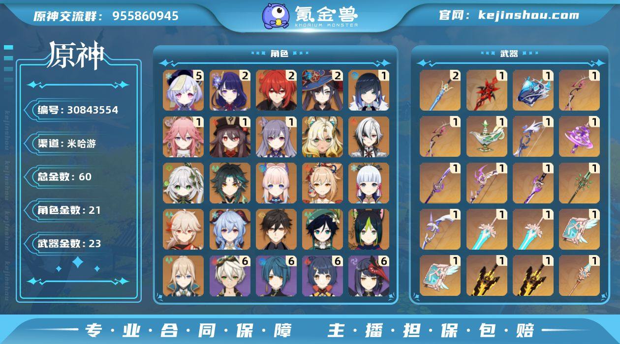 冒险等级:60 总黄数:60 男/女主:女主 5星角色数:21 5星武器数:23 纠缠之源数量:0 原石数量:28 卖家说:诚信卖