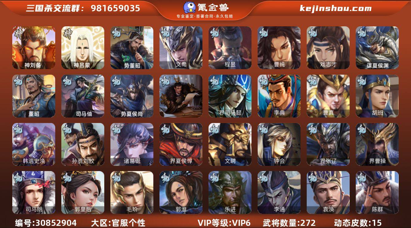 神刘备,曹纯,戏志才,势董昭,程昱,谋赵云,谋马超,张星彩,谯周,界黄忠,董允,骆统,界朱然,文鸯,张让,星甘宁,麹义,刘焉,界左慈,界李儒,公孙康,谋张角,星董卓,兀突骨,神吕蒙,势夏侯尚,SP关羽,SP曹仁,乐进,曹昂,诸葛诞,朱灵,文聘,SP姜维,钟会,曹冲,郭淮,满宠,界王异,界曹操,界司马懿,界夏侯惇,界张辽,界许褚,界郭嘉,李典,曹真,韩浩史涣,陈群,钟繇,司马朗,李通,郭皇后,孙资刘放,界甄姬,吕虔,蒯越蒯良,张恭,蔡贞姬,袁涣,崔琰,毛玠,谋徐晃,谋于禁,胡班,司马伷,谋夏侯渊,唐咨,董昭,SP孙尚香,夏侯霸,马良,关兴张苞,廖化,界马岱,关平,刘封,界法正,界关兴张苞,界刘备,界马超,SP徐庶,吴懿,周仓,张松,刘谌,夏侯氏,糜竺,马忠,孙乾,界黄月英,赵统赵广,界伊籍,吕凯,张翼,杨仪,邓芝,界简雍,陈震,费祎,界周仓,向宠,宗预,谋庞统,界张嶷,谋张飞,吴班,李遗,霍峻,诸葛果,蒋琬费祎,糜芳傅士仁,甘夫人,势陈祗,孙茹,凌操,诸葛恪,诸葛瑾,孙鲁育,程普,韩当,潘璋马忠,虞翻,朱然,界甘宁,界吕蒙,界黄盖,界周瑜,界大乔,界陆逊,孙鲁班,朱桓,顾雍,孙休,阚泽,孙登,孙亮,严畯,界凌统,界虞翻,孙邵,桥公,陈武董袭,蒋钦,界孙鲁班,谋韩当,谋周瑜,界全琮,界朱治,谋小乔,张布,孟达,友徐庶,友庞统,伏完,界袁术,SP赵云,张宝,伏皇后,李儒,界于吉,华雄,袁术,界华佗,公孙瓒,蔡夫人,公孙渊,郭图逢纪,张鲁,蹋顿,SP黄月英,董白,曹节,张梁,卢植,刘琦,界庞德,樊稠,董承,界公孙瓒,羊祜,谋刘赪,马日磾,王濬,谋卢植,谋高顺,鲍信,贾充,李傕郭汜,甄姬-明珠耀躯(动态),钟会-龙年端午(动态),戏志才-举棋若定(动态),马超-明良千古(动态),诸葛亮-龙年限定(动态),卧龙诸葛-火烧博望(动态),...