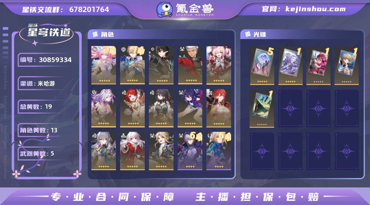 开拓等级:65 开拓者性别:女 总黄数:19 星轨专票:20 五星角色数:13 2命昔涟,1命杰帕德,0命丹恒·腾荒,0命Archer,0命风堇,0命遐蝶,0命缇宝,0命阮·梅,0命希儿,0命姬子,0命布洛妮娅,0命克拉拉,0命彦卿 五星光锥数:5 5精记忆永不落幕,1精让告别,更美一些,1精以世界之名,1精制胜的瞬间,1精星海巡航 邮箱状态:送网易邮箱