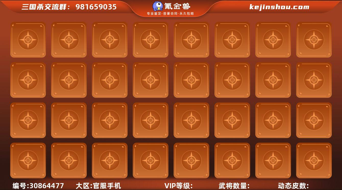 官阶:骠骑将军;VIP等级:VIP9;史诗武将数量:22;动态皮肤数量:15;武将总数:264;史诗宝珠数量:0;将魂数量:3344;神将:3;魏国史诗武将:12;蜀国史诗武将:4;吴国史诗武将:4;群史诗武将:6 神吕布,神赵云,神甘宁,王元姬,界钟会,曹纯,戏志才,程昱,赵襄,沙摩柯,花鬘,董允,谋陆逊,孙皓,留赞,界徐盛,左慈,星甘宁,陶谦,界左慈,星董卓,兀突骨,势夏侯尚,SP关羽,SP蔡文姬,乐进,曹昂,诸葛诞,朱灵,文聘,SP姜维,钟会,曹冲,郭淮,满宠,界王异,界曹操,界司马懿,界夏侯惇,界张辽,界郭嘉,李典,曹真,韩浩史涣,陈群,曹叡,曹休,钟繇,司马朗,李通,郭皇后,吕虔,鲁芝,界荀彧,界邓艾,张恭,界满宠,卞夫人,华歆,蔡贞姬,袁涣,崔琰,毛玠,谋夏侯渊,臧霸,董昭,势陈到,SP孙尚香,关银屏,夏侯霸,马良,关兴张苞,廖化,界马岱,关平,简雍,刘封,界法正,界关兴张苞,界刘备,界张飞,界赵云,SP徐庶,吴懿,周仓,张松,刘谌,夏侯氏,糜竺,李严,界黄月英,界伊籍,界庞统,界刘禅,张翼,杨仪,邓芝,傅肜,界简雍,费祎,界周仓,刘巴,彭羕,谋庞统,谋姜维,谋张飞,霍峻,诸葛果,蒋琬费祎,甘夫人,孙茹,凌操,诸葛恪,诸葛瑾,孙鲁育,程普,韩当,潘璋马忠,虞翻,朱然,界甘宁,界吕蒙,界黄盖,界周瑜,界大乔,界陆逊,孙鲁班,朱桓,顾雍,孙休,朱治,全琮,孙登,界孙尚香,潘濬,严畯,许贡,卫温诸葛直,界韩当,孙邵,蒋钦,吕范,谋周瑜,界孙休,界全琮,界朱治,谋小乔,友庞统,伏完,界袁术,张宝,伏皇后,李儒,界张角,华雄,袁术,界华佗,界吕布,公孙瓒,蔡夫人,公孙渊,郭图逢纪,张鲁,SP黄月英,董白,刘虞,曹节,蔡邕,卢植,刘琦,界庞德,界颜良文丑,樊稠,刘繇,董承,界公孙瓒,界伏皇后,荀谌,谋刘赪,王濬,乐就,神甘宁-万人辟易(动态),郭嘉-墨点江山(动态),荀彧-龙年限定(动态),钟会-潜蛟觊天(动态),曹昂-竭战麟伤(动态),戏志才-举棋若定(动态),王元姬-婆娑起舞(动态),马超-虎年冬至(动态),卧龙诸葛-火烧博望(动...