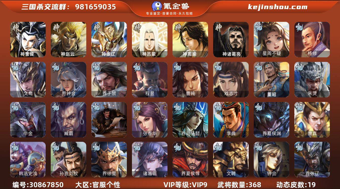 sgss编号1688 回廊双形态杜预 动神曹操 谋关羽 文鸯 张让 麯义 界钟会 动大宝31史诗大将军 道具充足 官方个性账号