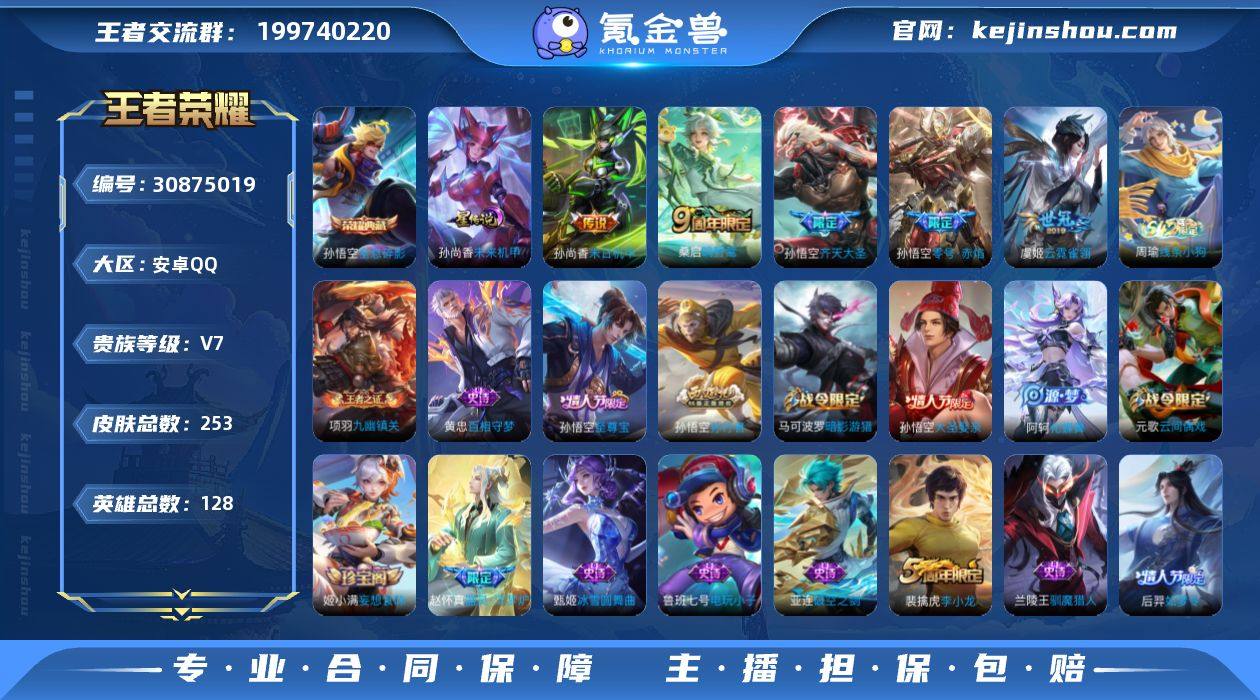 贵族等级:V7 典藏皮肤数:1 珍品无双皮肤数:0 无双皮肤数:0 珍品传说皮肤数:0 传说皮肤数:5 史诗皮肤数:62 皮肤数:253 英雄数:128 段位:星耀
