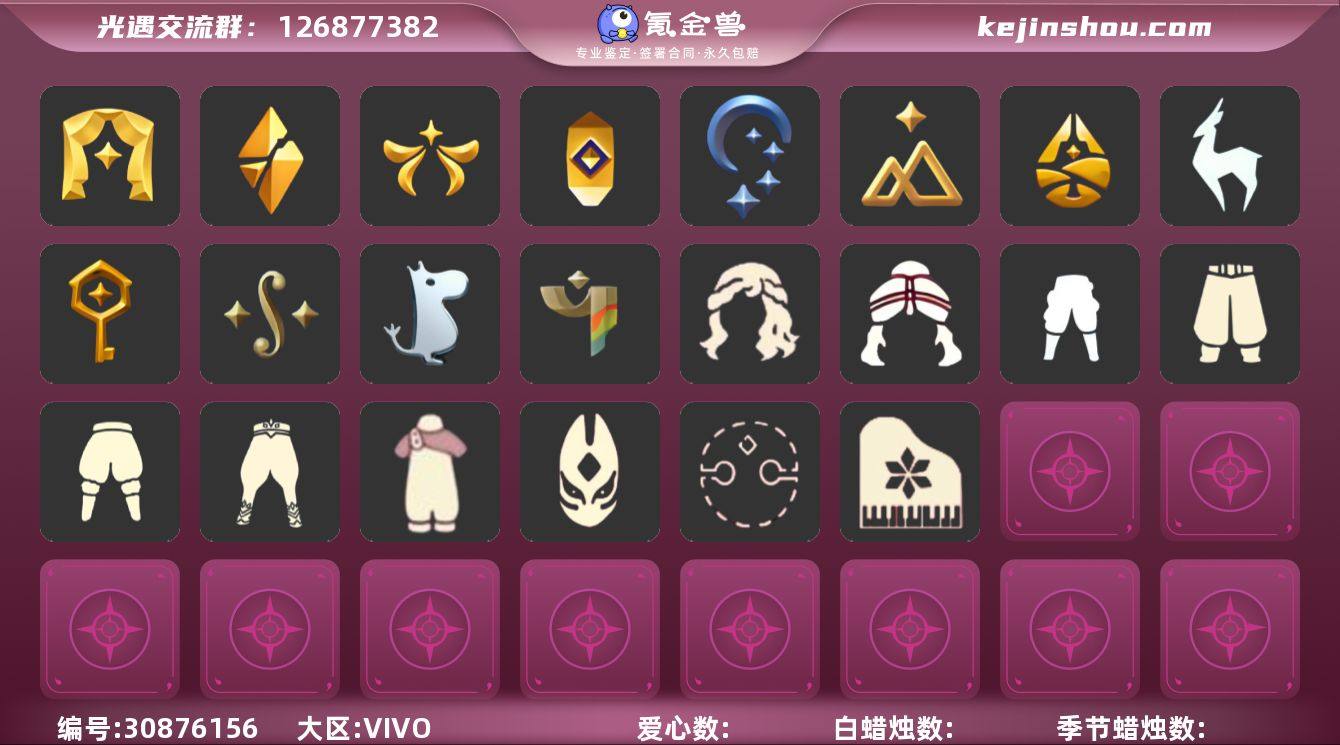 白枭玉兔拖鞋巫师帽爱丽丝装扮绊爱花憩茶桌透明蝶翼详情看图价格可谈 资源:蜡烛7 爱心63 翼10 已毕业地图:雨林 霞谷 墓土 毕业季节:潜海季 表演季 破晓季 欧若拉季 追忆季 彩染季 青鸟季 半九色鹿 夜行卡 拾光卡 毕业物品:单边小辫 暗红斗篷 氧气面具 黄眉企鹅面具 燕尾斗篷 白枭发型 双翼遥鲲斗篷 冥龙斗篷 留辫蘑菇头 高领舞服 透明蝶翼斗 肩带 追忆之书 彩染围巾斗篷 辉光羚羊面具 青鸟面饰 青鸟斗篷 稀有礼包:爱丽丝围裙套装 玉兔拖鞋 姆明饰品 巫师帽 绊爱套装 大桔大利 贝壳发夹 玉兔头饰 满月耳坠 冥龙号角 花憩茶桌 热门裤子:遥鲲长裙 绑带舞服 墨绿长裤 奔月长裙 海浪阔腿裤 爱丽丝装扮 玉兔拖鞋 白棉裤 搓澡巾 武士裤 小丑服 女仆围裙 流珠红色连 探险燕尾礼 热门面具:矮人面具 黄鼠狼面具 潜海面具 黄眉面具 一字眉 盲僧眼罩 向导面具 青鸟面具 黑脸 鸟羽面具 热门发型:海草头 爆炸头 雨妈 卡卡 平菇 龙骨 公主头 粗辫 水母头 书虫 正太头 高马尾 郡主头 虚荣 白枭 圆环发辫 留辫蘑菇头 兔子头 樱花头 猫耳 巫师帽 绊爱 热门头饰:鸟羽发饰 花环 珊瑚发饰 晃悠悠 红耳机 单边发饰 探险耳机 桔子发饰 贝壳发饰 玉兔发饰 满月耳环 热门斗篷:五星斗篷 红金斗篷 黑金斗篷 白金斗篷 燕尾服斗篷 暗花斗篷 冥龙斗篷 遥鲲长斗 展翼圆环斗篷 透明蝶翼 小浣熊斗篷 镂空三条斗篷 镂空斗篷 彩染季围巾斗篷 红色探险斗篷 星空斗篷 鸟羽斗篷 绊爱斗篷 热门背饰:追忆围巾 号角 相机 鲲灯 风铃 冥龙号角 花憩茶桌,白棉裤,搓澡巾,女仆围裙,武士裤,爱丽丝围裙,绑带舞服