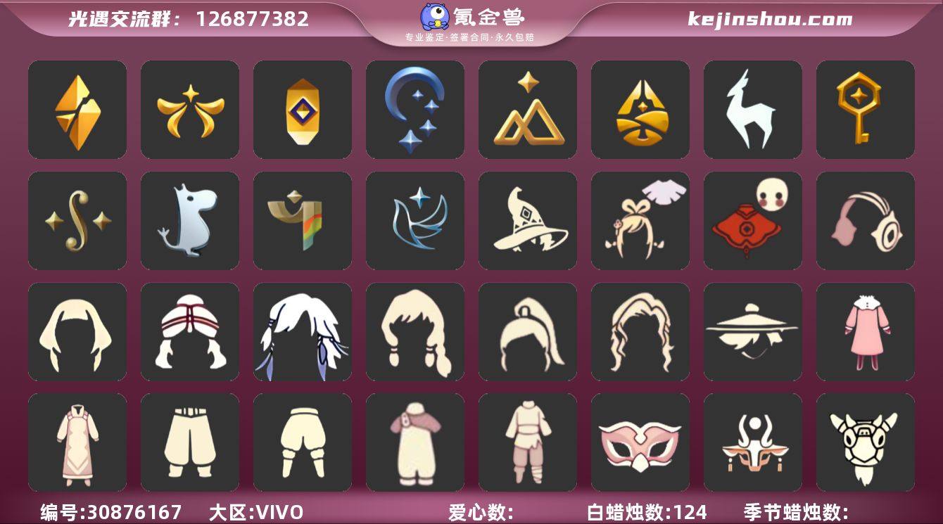 12季11翼白枭透明蝶翼我那股围巾绊爱瑞雪斗武士裤TGC斗篷圣诞鹿角衔福献瑞 资源:蜡烛449 爱心250 红烛72 已毕业地图:全图毕业 毕业季节:集结季 小王子季 风行季 潜海季 表演季 破晓季 欧若拉季 追忆季 筑巢季 二重奏季 姆明季 彩染季季卡 毕业物品:队长面具 双耳锅帽 胜利号角 连帽斗篷 小王子发型 小王子套装 玫瑰花 小王子套装 多羽发饰 蓝黄羽袖 单边小辫 暗红斗篷 氧气面具 黄眉企鹅面具 燕尾斗篷 白枭发型 双翼遥鲲斗篷 冥龙斗篷 留辫蘑菇头 高领舞服 透明蝶翼斗 肩带 追忆之书 设计师长袍 光之子试衣 合奏挂画 蓝色燕尾服 白色高脚钢琴 姆明大伞 姆明抱枕 姆明长裙 稀有礼包: 绊爱套装 白雪斗篷 暖冬瑞雪 衔福献瑞礼包 王子围巾 TGC斗篷 爱丽丝围裙套装 雪人暖靴 大桔大利 鲤跃龙门 贝壳发夹 玉兔头饰 星月头冠 圣诞鹿角 祥云纸伞 献瑞折扇礼包 狐狸背包 热门裤子:背带裤 遥鲲长袍 绑带舞服 妮妮长裙 白棉裤 搓澡巾 紧身连体衣 武士裤 小王子服 羽袖长袍 小丑服 美工衣 热门面具:矮人面具 狐狸面具 黄鼠狼面具 集结面具 潜海面具 黄眉面具 一字眉 龙头 玫瑰花面具 黑脸 热门发型:海藻头 爆炸头 大胡子 小飞象 雨妈 卡卡 平菇 龙骨 指甲盖 箬笠 蝴蝶结 公主头 粗辫 水母头 书虫 总裁头 正太头 高马尾 明制帽 郡主头 锅盖头 虚荣 小王子头 白枭 圆环发辫 留辫蘑菇头 双辫发型 樱花头 猫猫头 女巫发型 圣诞帽 绊爱发型 光头 热门头饰:毕业羽毛 花环 橘子发饰 珊瑚发饰 晃悠悠 红耳机 辫子发饰 星月头冠 圣诞鹿角 热门斗篷:TGC黑底斗篷 五角星斗篷 花瓣斗篷 红金斗篷 黑金斗篷 白金斗篷 蝴蝶斗篷 连帽斗篷 小王子斗篷 燕尾服斗篷 暗花斗篷 冥龙斗篷 遥鲲长斗 展翼...