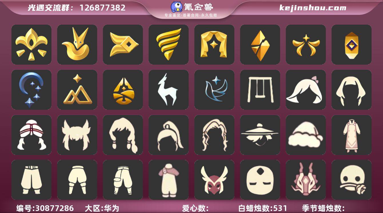 白枭透明蝶翼玫瑰花武士裤疯帽妮妮长裙鲲灯虚荣正太姆明季抱枕 19季10翼账号 资源:蜡烛2094 爱心392 红烛133 翼10 已毕业地图:全图毕业 毕业季节: 集结季 小王子季 风行季 潜海季 表演季 破晓季 欧若拉季 追忆季 九色鹿季 筑巢季 二重奏季 姆明季 彩染季 青鸟季 双星季 迁徙季 梦想季半毕业 夜行季半毕业 拾光季季卡 毕业物品:队长面具 双耳锅帽 胜利号角 连帽斗篷 小王子发型 小王子套装 玫瑰花 小王子套装 多羽发饰 蓝黄羽袖 单边小辫 暗红斗篷 氧气面具 黄眉企鹅面具 燕尾斗篷 白枭发型 双翼遥鲲斗篷 冥龙斗篷 留辫蘑菇头 高领舞服 透明蝶翼斗 肩带 追忆之书 九色鹿丸子头 九色鹿丝带裤 九色鹿飞天斗篷 设计师长袍 光之子试衣 合奏挂画 蓝色燕尾服 白色高脚钢琴 姆明大伞 姆明抱枕 姆明长裙 彩染围巾斗篷 辉光羚羊面具 青鸟面饰 青鸟斗篷 蓝色星星光环 暮星斗篷 蓝色毛绒绒鞋 蓝色毛绒裤子 海牛鹿角头饰 稀有礼包: 星月头冠 金鳞耳坠 雪花发夹 贝壳发夹 玉兔头饰 大桔大利 锦标赛桂冠 冥龙南瓜 热门裤子:背带裤 鳐鲲长裙 绑带舞服 奔月长袍 妮妮长裙 海洋武士裤 白棉裤 搓澡巾 武士裤 紧身连体衣 小王子服 羽袖长袍 小丑服 女仆围裙 美工衣 红色流珠裙 探险燕尾服 米色西装裤 热门面具:矮人面具 狐狸面具 黄鼠狼面具 红兔面具 凤凰面具 集结面具 氧气面具 黄眉面具 一字眉 棕熊面具 盲僧眼罩 向导面具 青鸟面具 玫瑰花面具 玫瑰面具 黑脸 粽叶面具 鸟语面具 鹿角面具 热门发型:海草头 爆炸头 大胡子 小飞象 雨妈 卡卡 平菇 龙骨 指甲盖 箬笠 蝴蝶结 公主头 粗辫 水母头 书虫 总裁 正太 高马尾 明制帽 郡主头 斗 双耳锅头 绿丝带 虚荣 小王子发型...