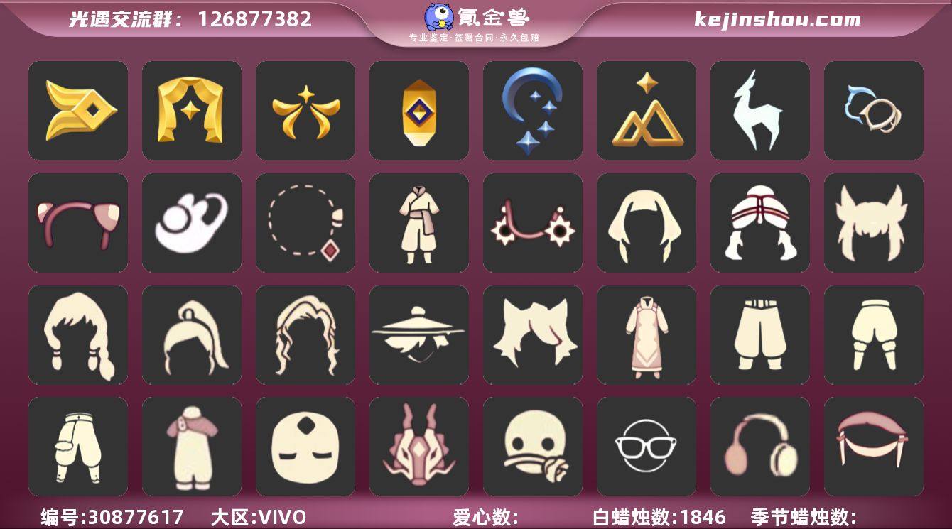 账号类型: 手机账号 季节已毕业: 梦想季,小王子季,风行季,潜海季,表演季,破晓季,集结季,夜行季,追忆季,拾光季,归巢季,九色鹿季,筑巢季,二重奏季,彩染季,青鸟季,双星季,迁徙季 完成地图: 晨岛,云野,雨林,霞谷,暮土,禁阁 珍稀物品: 白枭,玫瑰花,彩虹围巾 礼包: 围巾,九色鹿角,橘子,贝壳,兔子,枯角,彩虹耳机,蝴蝶结,四叶草,新年耳钉,创始人 裤子: 武士裤,背带裤,搓澡巾,击剑裤,王子服,飞天裤,筑巢季·裤子,青鸟尊贵蓬头裤子 面具: 凤凰面具,贴花面具,呼吸面具,夜行毕业面具,黄眉企鹅面具,辉光羚羊面具 面饰: 红耳机,黑框眼镜,青鸟毕业面饰 项链: 围巾 发型: 归巢毕业发型,若笠,虚荣,单侧绑发,小王子发型,飞天盘发 头饰: 行军锅头盔,羽毛发饰,牛仔帽,蓝色音乐会,平顶帽 斗篷: 海洋斗,蟑螂斗,绿芽,粉红绒毛斗篷,遥鲲斗篷,黄色连帽披风,燕尾斗篷,冥龙斗篷,彩染围巾斗篷,青鸟毕业斗篷 配饰: 雨伞,筑巢季·小手办,高音钢琴,相机,玫瑰花,二重奏挂画,鲲灯 亮点: 【优质装备】:表演季,白枭(帝企鹅发),武士裤,梦想季,小王子季(王子季),风行季,潜海季,破晓季,归巢毕业发型(五塑彩羽发),行军锅头盔(六边锅帽子)(双耳锅帽子),羽毛发饰(多羽发饰),筑巢季·小手办(光之子试衣),高音钢琴(白色高脚钢琴),集结季,玫瑰花,夜行季,追忆季,牛仔帽(西部帽),相机(季卡相机),拾光季,彩虹围巾(五塑彩带斗),归巢季,九色鹿(九色鹿季),王子服(小王子套装),飞天裤(柔缎花边连)(九色鹿丝带裤),蟑螂斗(凤凰斗篷),围巾(肩带),筑巢季,红耳机,晨岛,云野,雨林,霞谷,墓土(暮土),禁阁,若笠(箬笠),青鸟尊贵蓬头裤子(蓝色燕尾服),二重奏季,二重奏挂画(合奏挂画),筑巢季·裤子(设计师长袍),凤凰面具,贴花面具(丛林黑面具),呼吸面具(潜水面具),夜行毕业面具(棕熊面具),黄眉企鹅面具,黑框眼镜(粗框眼镜),单侧绑发(单边小辫),小王子发型,粉红绒毛斗篷(绒毛斗篷),遥鲲...