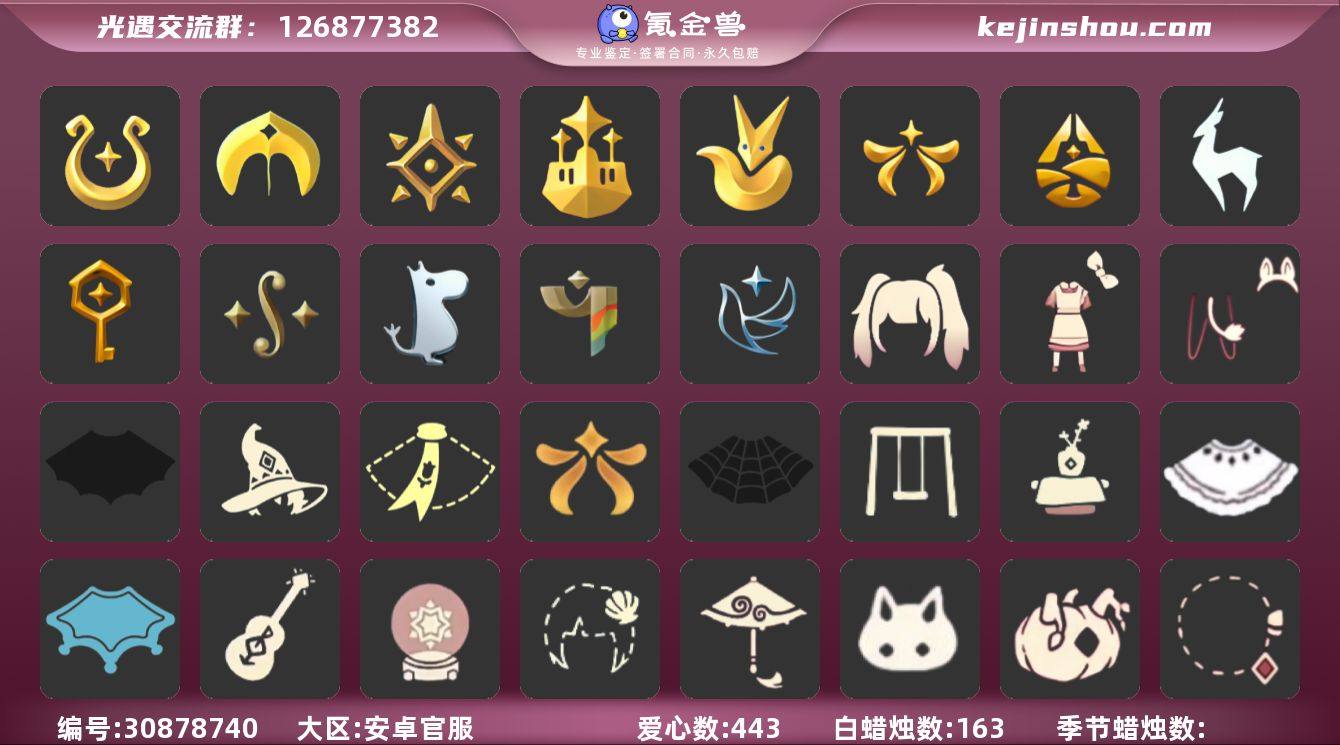 A01 17季卡魔法耳坠阿努比斯拖鞋耳机彩虹武士裤巫师帽 区服:国服安卓官服,登入方式:手机【17季卡】,魔法耳坠阿努比斯拖鞋耳机彩虹武士裤巫师帽绊爱福娃蝙蝠斗秋千红伞,蜡烛数量:163,爱心:443,当前身高0.920,最高身高0.709,最矮身高12.709,已经毕业地图:晨岛,云野,雨林,霞谷,暮土,禁阁,已经毕业季节:青鸟季,彩染季,姆明季,二重奏季,筑巢季,九色鹿季,归巢季,欧若拉季,王子季,梦想季,预言季,圣岛季,魔法季,稀有礼包:奔离远行服饰,献给爱的裙装,彩虹武士裤,爱丽丝围裙套装,玉兔拖鞋,雪人暖心靴,星月头冠,彩虹耳饰,彩虹耳机,金鳞耳坠,日光耳环,圣诞鹿角,姆明饰品套装,奔离远行发型,多彩绒绒帽,巫师帽,南瓜头,绊爱套装,海蓝波浪发型,渐变双马尾发型,贝壳,雪花发卡,大桔大利,四叶草头饰,小狗周年头饰,心心相印发饰,tgc,创始人礼包,小王子围巾,AURORA 之翼,臣服斗篷,新春福娃,皮皮猫装扮,蝙蝠斗篷,保暖雪人斗篷,白雪斗篷,暖冬瑞雪,衔福献瑞礼包,欧若拉之声,灯笼,祥云瑞气纸伞,献瑞折扇礼包,狐狸背包,情人秋千,冰雪水晶球,球赛礼包,周年庆抱枕,古典音乐桌椅,周年庆影院套餐,冥龙套装,蝴蝶与花,粽子头饰,青衫落拓礼包,必胜客披萨,热门物品:阿努比斯,蝴蝶结,公主头,正太头,樱花头,猫猫头,搓澡巾,武士裤,白棉裤,背带裤,花环头饰,宴会围巾,虚荣发型,红耳机,黄鼠狼面具,红狐狸面具,花瓣斗篷,灯泡斗篷,红金斗篷,白金斗篷,白鸟斗篷,吉他,尤克里里,高音钢琴,笛子,排箫,铃铛,雨伞,魔法季双边耳坠