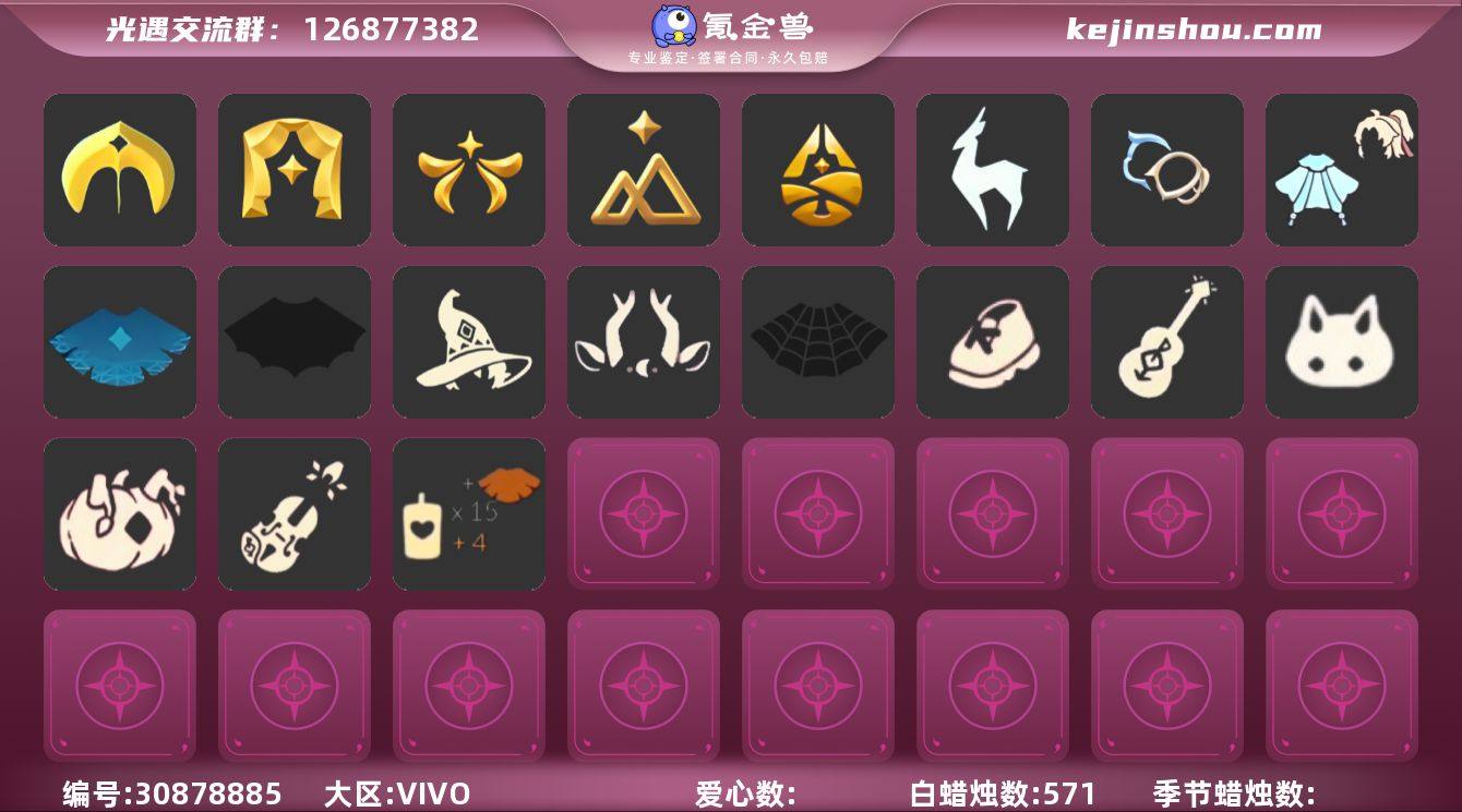 [17187277]安卓官服 邮箱账号 2珍稀物品 10毕业季 6毕业图 296蜡烛 【珍稀物品】白枭(帝企鹅发),透明蝶翼斗 【季节已毕业】风行季,潜海季,表演季,破晓季,欧若拉季(欧若拉),追忆季,夜行季,九色鹿(九色鹿季),二重奏季,姆明季 【完成地图】晨岛,云野,雨林,霞谷,墓土(暮土),禁阁 【礼包】活力海牛礼包,兔子鞋(兔子拖鞋),新年裤(瑞气服饰),姆明饰品套装(姆明尾巴),彩虹帽(多彩绒帽),南瓜(冥龙南瓜),巫师(巫师帽),绊爱(绊爱斗篷)(绊爱礼包),橘子(大橘大利),奥利奥(周年庆抱枕),锦标赛桂冠,雪花(雪花发夹),兔子(玉兔头饰)(玉兔发饰)(兔子发饰),四叶草(四叶草头饰),星月头饰(星月头冠),新年耳钉(金鳞耳饰),彩虹耳钉(彩虹耳饰),彩虹耳机,日光耳环,满月耳坠,枯角(巫树犄角),鹿角(圣诞鹿角),创始人(创始人斗篷),福娃(福娃礼包)(春之日礼包)(铜钱斗),蝙蝠套(蝙蝠斗篷)(南瓜头),蜘蛛斗(蛛丝斗篷)(蛛网斗篷),瑞雪(瑞雪斗篷)(暖冬瑞雪),白绒金(白雪斗篷),吉他(音韵吉他)(白吉他),人声乐器(欧若拉之声),红伞(瑞气纸伞),秋千(情人秋千),茶桌(花憩茶桌),茶壶(小憩茶桌),小船(情人小船),猫背饰(猫咪背饰),大铁头,小狗周年发饰(小狗周年头饰) 【裤子】青鸟尊贵蓬头裤子(蓝色燕尾服),飞天裤(柔缎花边连)(九色鹿丝带裤),妮妮裙子(妮妮长裙),蓝绿裤(高领舞服),武士裤,背带裤,搓澡巾 【面具】黄眉企鹅面具,夜行毕业面具(棕熊面具),呼吸面具(潜水面具) 【面饰】黑框眼镜(粗框眼镜),红耳机 【项链】围巾(肩带) 【发型】单侧绑发(单边小辫),留辫蘑菇头,飞天盘发(九色鹿丸子头),虚荣,若笠(箬笠) 【头饰】平顶帽,蓝色音乐会(蓝色音乐符),羽毛发饰(多羽发饰) 【斗篷】燕尾斗篷,冥龙斗篷,遥鲲斗篷(双翼遥鲲斗),粉红绒毛斗篷(绒毛斗篷),绿芽,海洋斗 【配饰】鲲灯(追忆之书),相机(季卡相机),小红伞(姆明红伞)(姆明大伞),姆明抱枕,二重奏挂画(合奏挂...