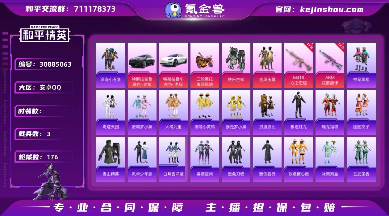 安卓Q 可二次 3载具3粉装2特效枪1飞行器131套装176枪皮 特斯拉3白色 特斯拉X银色 鬼马风驰 梦幻火箭 金风玉露 快乐主宰 M416-心之恋语(6级) AKM-炫紫旋律(5级) 梦幻火箭飞行器 精灵迷巫头盔 梦幻火箭头盔 折纸暴龙头盔 金风玉露头盔 梦幻火箭背包 金风玉露背包 神秘黑猫背包 奇迹天团 星光纪元 雪山精英 潮萌小黄鸭 奇迹天团 激萌罗小黑 暴走罗小黑 深海小丑鱼 大橘为重 浪漫波比 神秘黑猫 团圆交子 瑞龙福将 漫步者 冰爽海盐 玄武圣者 风华少年志 白月香洋装 新侠客行 软嫩糖心蛋 黑色刀锋 极速红龙 赛博空间 M416-仓鼠灰灰 M762-瑞龙福将 M249-古堡领主 Kar98K-古堡领主 和平精英账号