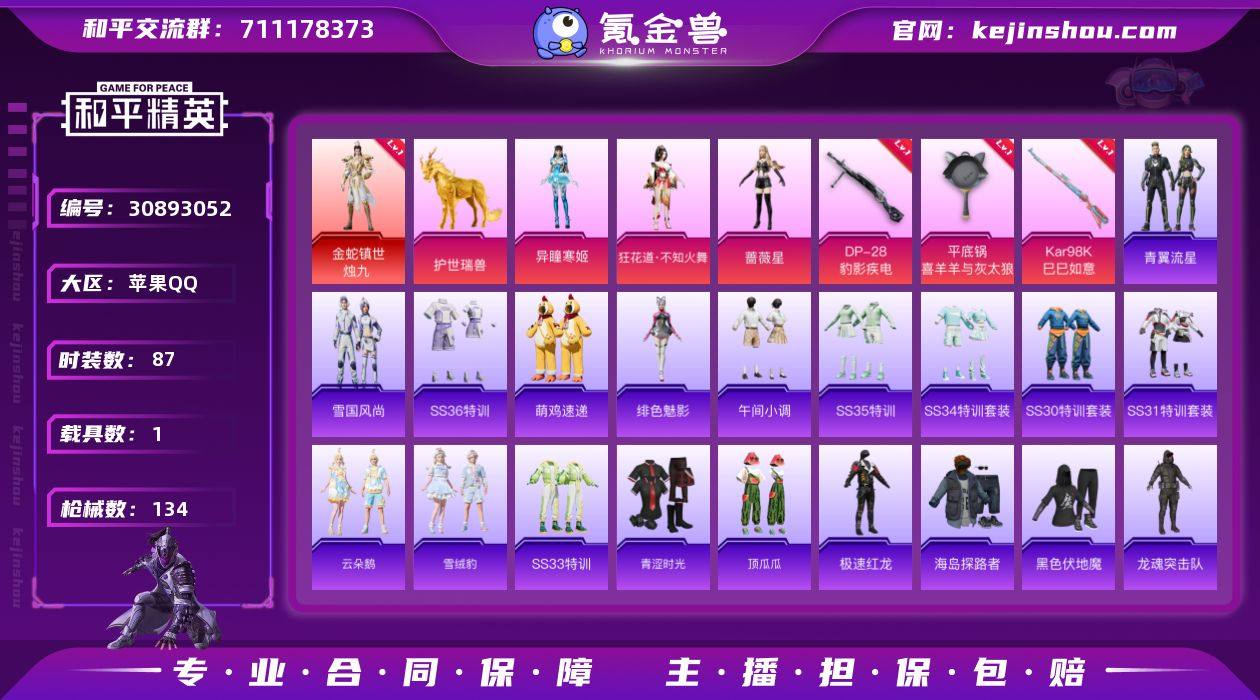 【3级红装星河浪客3粉装3特效枪1载具 秒换绑不用等】 苹果Q区-41507热力值-4印记-87套装-134枪皮 【1红装】 金蛇镇世-烛九(3级)【1载具】 护世瑞兽【3稀有】 星河浪客 Mark.06蓝螳螂 8号机粉螳螂【3粉装】 蔷薇星 角色-异瞳寒姬 角色-狂花道·不知火舞【3特效枪】 Kar98K-巳巳如意(5级) DP-28-豹影疾电(5级) 平底锅-喜羊羊与灰太狼(2级)【148热门】 浪漫天命 破蛋小黄鸡 深海小丑鱼 极速红龙 狂沙舞者 白色伏地魔 SS27特训 SS25特训 SCAR-L-玉兔迎春 GROZA-田园牧歌 AUG-幻影战神 M762-天降萌叽 M762-彩虹符号 Mk47-乌木金纹 UMP45-炫光之旅 M249-彩虹符号 MG3-幻世战舞者 长空猛禽 特训学院 青涩时光 魅力单车 蓝色运动 竞技达人朋克 漫步者 黄色伏地魔 黑色伏地魔 海岛探路者 纯真浪花 MK12-金蛇镇世 情公主 顶瓜瓜 雏菊兔兔 MG-36-薄荷星砂 恋语绒绒 SS34特训 撬棍-冰晶雪宝 突击盾牌-初号机 觉醒Ver. SS21特训 蓝冰羽 龙魂突击队 SS29特训 萝兰蝴蝶 破片手榴弹-爆破雪人 SS30特训 ACE32-冰晶雪宝 青团波波 鱼渊荷华 糖糖葫芦 青翼流星 SS28特训 PKM-啾咪啾咪 海盐绵绵冰 M16A4-冰河战士 燕燕于飞 SS31特训 SS33特训 SS32特训 紫幽梦 绯色魅影 M762-雏菊兔兔 雪绒豹 Mini14-雏菊兔兔 R1895-雏菊兔兔 SS36特训 热情海星 瑰梦爱神 平底锅-萌萌彩虹球 智谋强哥 战术大师 云朵鹅 短管霰弹-星穹咏叹调 S1897-精灵梦叶罗丽 M416-糯团青竹 Kar98K-彩虹符号 MK20-H-星途旅人 AKS-74U-辉羽雀灵 风玲 PKM-紫幽梦 Mk14-冰河战士 GROZA-海盐豹豹 Mini14-香桃花海 破片手榴弹-巳巳如意 AUG-金蛇镇世 Mk14-紫幽梦 P90-金蛇镇世 M16A4-千金淑猫 SCAR-L-星途旅人 蝎式手枪-千金淑猫 野牛-雏菊兔兔 M