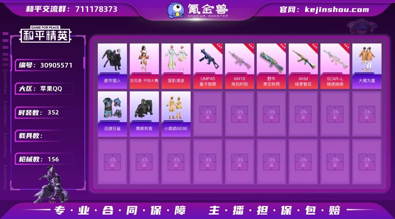 3粉装 8特效枪 10印记 可二次 可修改实名 身法装备:都市猎人 热门装扮:狂花道·不知火舞,星穹咏叹调,莲影清波,大橘为重,迅捷狂鲨,鹰眼刺客,都市猎人,小鹦鹉BEBE 稀有枪皮:GROZA-镜光银凌,Kar98K-巳巳如意,AUG-暖羊咩咩,M416电玩时刻,UMP45量子极限,野牛-青空秋雨,AKM绿萝繁花,SCAR-L-锦绣绵绵 六级特效枪:六级野牛-青空秋雨 五级特效枪:五级UMP45-量子极限,五级AUG-暖羊咩咩,五级GROZA-镜光银凌,五级Kar98K-巳巳如意,五级SCAR-L-锦绣绵绵,五级M416-电玩时刻,五级AKM-绿萝繁花 紫色装扮:冰冻风暴,SS27特训,幻羽潜行,焰鹰斗篷,春光漫游,快闪甜心,白光莹,雏菊兔兔,萝兰蝴蝶,SS29特训,多纳泰罗,纯真浪花,热情海星,SS28特训,卖崽青蛙,SS26特训,惊鸿侠骨,锦衣飞扬,SS25特训,甜梦熊熊,神气柴柴,懵萌河马,SS24特训(SS24特训套装),日照花林,小丑鱼,华灯初上,浪漫天命,蓝冰羽,紫幽梦,SS32特训服(SS32特训套装),恋语绒绒,都市丽猫,青团波波,糖糖葫芦,竞技名士,临安公主,星途旅人,怀庆长公主,智谋强哥,鱼渊荷华,燕燕于飞,巳巳如意 优质战备:繁龙极客降落伞,镜域双华降落伞,江南烟雨降落伞,龙翔九天飞行器,未来歌姬降落伞,镜光幻境降落伞,闲梦青缨降落伞,萌物绒绒降落伞,BEARBRICK降落伞,英伦信使降落伞,拳皇·狂花道降落伞,星途旅人降落伞,精灵之光降落伞,千金淑猫降落伞,彩虹甜喵降落伞,青空秋雨降落伞,春暖花开降落伞