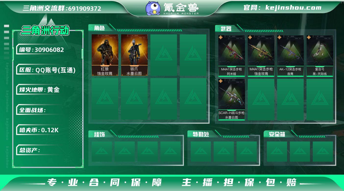 总资产:433.3M 2干员外观 16传说枪械 哈夫币:128K 可二次 可修改实名 【烽火地带段位】:黄金 【全面战场段位】:无段位 【传说武器皮肤】:SCAR-H战斗步枪-水墨云图,M250通用机枪-骑士之心,ASh-12战斗步枪-鹅鸭杀,QCQ171冲锋枪-鹅鸭杀,QJB201轻机枪-鹅鸭杀,725双管霰弹枪-送葬人-无题密令,M4A1突击步枪-阿米娅,复合弓-黑-天际线,勇士冲锋枪-能天使-午夜邮差,AK-12突击步枪-特斯拉线圈,SR-3M紧凑突击步枪-特斯拉线圈,UZI冲锋枪-特斯拉线圈,M4A1突击步枪-蚀金玫瑰,SMG45冲锋枪-骑士,AK-12突击步枪-夜鹰,CAR-15突击步枪-黑鹰坠落 【史诗武器皮肤】:AUG突击步枪-蝮蛇,M700狙击步枪-蝮蛇,SV-98狙击步枪-林中猎手,AS Val突击步枪-典狱官,M250通用机枪-囚徒,PKM通用机枪-荒野求生,SR-3M紧凑突击步枪-荒野求生,PSG-1射手步枪-无垢,M249轻机枪-异域战争,P90冲锋枪-紧急戒备,QJB201轻机枪-Old Habits,PKM通用机枪-守夜人,沙漠之鹰-曙光,QBZ95-1突击步枪-曙光,AS Val突击步枪-尖端治疗,SG552突击步枪-尖端治疗,Ash-12战斗步枪-守夜人,SR-25射手步枪-尖端治疗,MP5冲锋枪-深海恐惧,勇士冲锋枪-深海恐惧 【干员外观】:红狼-蚀金玫瑰,骇爪-水墨云图