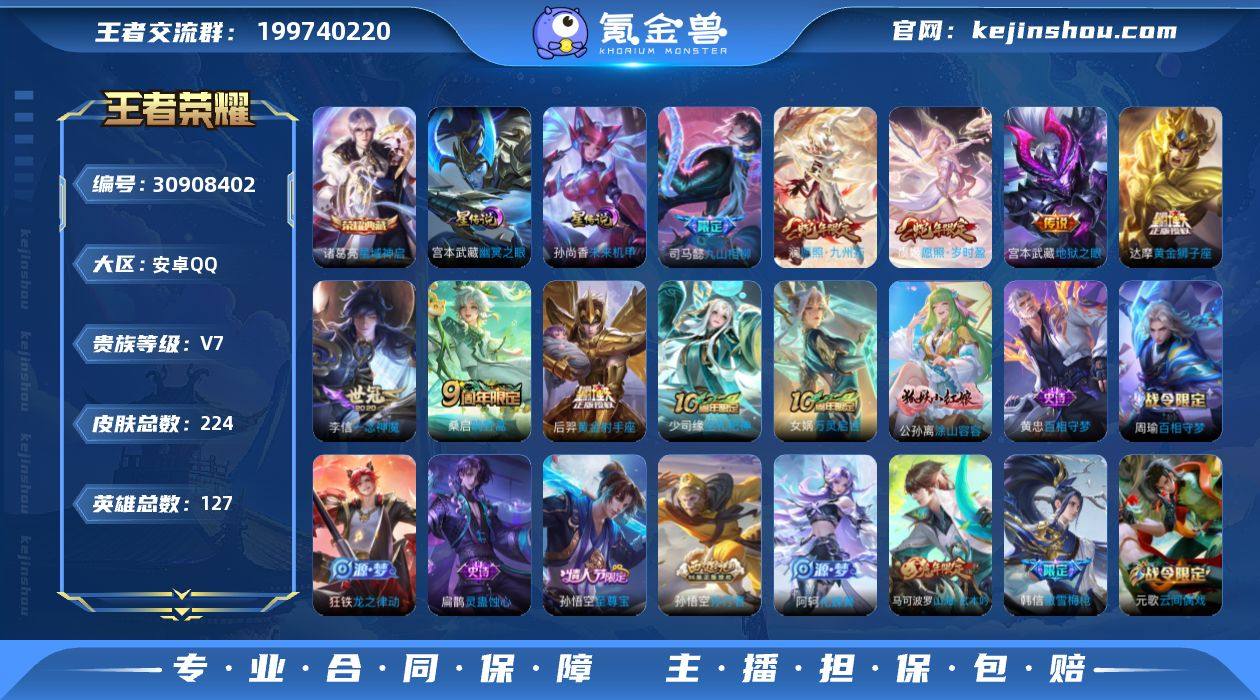 AHC40671,,至尊宝/2星传说/1天幕,,,安卓Q-V7-最强王者段位-127英雄-224皮肤-1典藏皮肤-8传说-68史诗 【英雄全皮】:孙权全皮 【荣耀典藏】:诸葛亮星域神启 【传说皮肤】:司马懿九山相柳,澜愿照九州拓,虞姬愿照岁时盈,桑启鸣野蒿,李信一念神魔,达摩黄金狮子座,后羿黄金射手座,宫本武藏地狱之眼 【限定皮肤】:姜子牙天穹之誓,狄仁杰阴阳师,赵云皇家上将,赵云龙胆,嬴政优雅恋人,孙尚香蔷薇恋人,白起夜都怪侠,元歌云间偶戏,元歌无心,马可波罗山海玄木吟,狄仁杰魔术师,达摩沙漠行僧,项羽海滩派对,韩信傲雪梅枪,王昭君午后时光,兰陵王金庭之子,孙悟空至尊宝,孙悟空孙行者,李元芳云中旅人,钟馗驱傩正仪,鬼谷子五谷丰年,黄忠烈魂,苏烈千军破阵,百里玄策原初追逐者,梦奇顽趣,沈梦溪大漠名商,明世隐吟游魔法,裴擒虎擒涛扼浪,狂铁电玩高手,嫦娥拒霜思,嫦娥暖冬兔眠,鲁班大师探海日志,桑启海盐诗旅,暃星界游侠,张良古海寻踪,蒙恬荣光圣徽,高渐离燃音魔法,妲己灵卜魔法,鬼谷子天穹祈灯,伽罗琥珀纪元,沈梦溪龙舞盛年,鲁班七号蔬乡物语,李元芳蔬乡物语,刘邦剑破天穹,程咬金群星魔术团,刘备异域游侠,周瑜熔金海岸 【年限皮肤】:马可波罗山海玄木吟,澜愿照九州拓,虞姬愿照岁时盈 【赛季限定】:钟馗驱傩正仪,苏烈千军破阵,达摩沙漠行僧,兰陵王金庭之子,沈梦溪大漠名商,李元芳云中旅人,桑启海盐诗旅,裴擒虎擒涛扼浪,鲁班大师探海日志,张良古海寻踪,鬼谷子天穹祈灯,刘邦剑破天穹,姜子牙天穹之誓,东皇太一噬灭天穹,太乙真人谧流熔炉,甄姬逆浪荇歌,亚瑟荣光之誓,百里玄策原初追逐者,梦奇顽趣,蒙恬荣光圣徽,牛魔星界战将 【战令限定】:元歌云间偶戏,明世隐吟游魔法,白起夜都怪侠,狂铁电玩高手,王昭君午后时光,暃星界游侠,嫦娥暖冬兔眠,高...