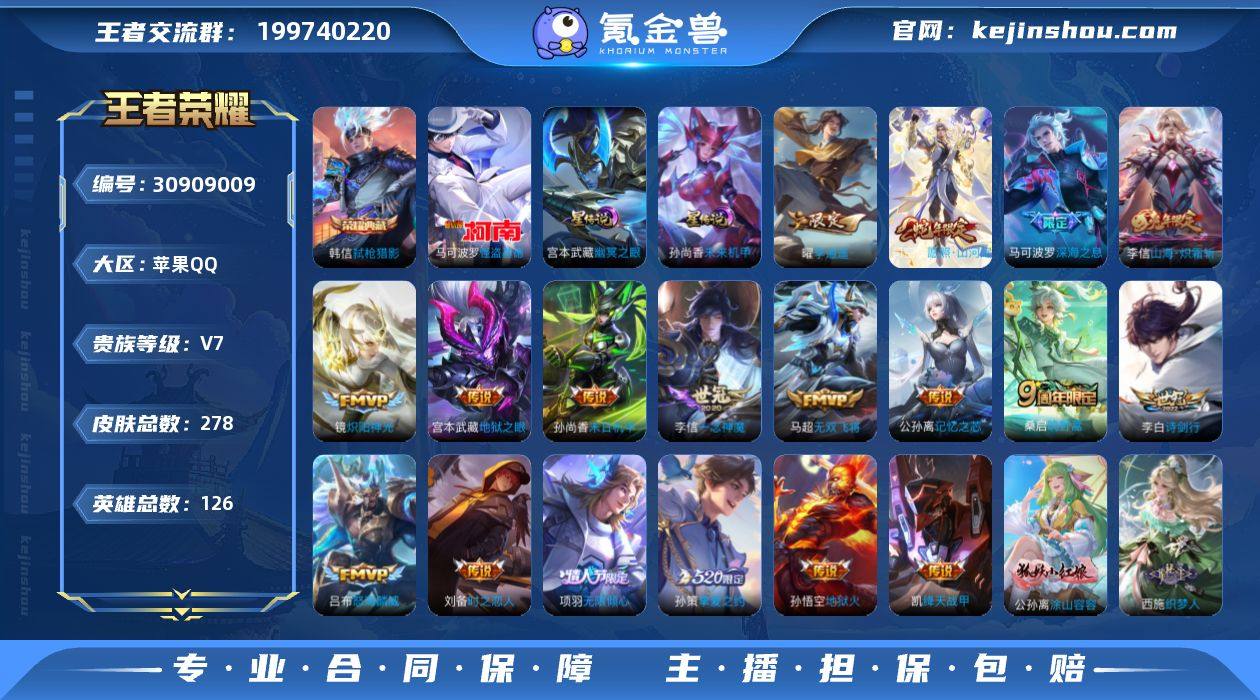 CHC50736,,,马可波罗怪盗基德/苹果Q-V7-永恒钻石IV段位-126英雄-278皮肤-1典藏皮肤-1珍品传说-18传说-72史诗 【英雄全皮】:李信全皮,司空震全皮,戈娅全皮,空空儿全皮 【荣耀典藏】:韩信弑枪猎影 【珍品传说】:马可波罗怪盗基德 【传说皮肤】:司空震愿照山河定,桑启鸣野蒿,公孙离记忆之芯,项羽无限倾心,李信山海炽霜斩,吕布怒海麟威,李白诗剑行,马可波罗深海之息,马超无双飞将,孙策挚爱之约,曜李逍遥 ,铠绛天战甲,镜炽阳神光,李信一念神魔,刘备时之恋人,孙尚香末日机甲,宫本武藏地狱之眼,孙悟空地狱火 【限定皮肤】:姜子牙天穹之誓,杨戬破阵退雄兵,狄仁杰阴阳师,赵云皇家上将,嬴政优雅恋人,孙尚香蔷薇恋人,钟无艳超时空战士,扁鹊奇幻香踪,白起夜都怪侠,芈月重明,元歌无心,夏侯惇朔风刀,甄姬落雪兰心,典韦穷奇,马可波罗深海之息,狄仁杰魔术师,狄仁杰万华元夜,达摩沙漠行僧,项羽海滩派对,项羽无限倾心,老夫子醍醐杖,程咬金演武夺筹,韩信傲雪梅枪,王昭君午后时光,兰陵王金庭之子,花木兰瑞麟志,花木兰默契交锋,牛魔御旌,李元芳匿光侦查者,李元芳云中旅人,钟馗驱傩正仪,杨玉环遇见飞天,杨戬潮玩骑兵,雅典娜黎明之约,鬼谷子原初探秘者,鬼谷子五谷丰年,苏烈千军破阵,百里玄策原初追逐者,弈星混沌棋,梦奇顽趣,沈梦溪大漠名商,明世隐疑决卦,明世隐吟游魔法,裴擒虎李小龙,裴擒虎擒涛扼浪,狂铁电玩高手,云中君纤云弄巧,李信山海炽霜斩,盾山御銮,孙策挚爱之约,上官婉儿梁祝,嫦娥拒霜思,曜李逍遥 ,西施玲珑珍味,鲁班大师探海日志,桑启海盐诗旅,戈娅驭风魔法,艾琳女武神,艾琳流音漫舞,司空震地狱燃心,阿古朵江河有灵,张良古海寻踪,蒙恬荣光圣徽,高渐离燃音魔法,妲己灵卜魔法,鬼谷子天穹祈灯,沈梦溪龙舞盛年,刘邦剑破天穹,程咬...