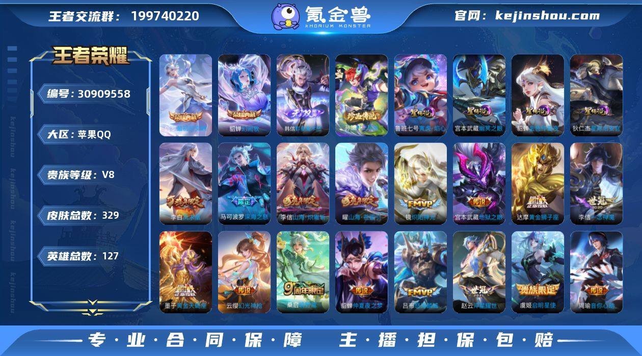 BHC60153,,幻阙歌-最初的交响/群星魔术团/时之奇旅/4星元/9按键/1天幕,,苹果Q-V8-至尊星耀IV段位-127英雄-329皮肤-2典藏皮肤-1无双-1珍品传说-17传说-86史诗 【英雄全皮】:狂铁全皮,李信全皮,影全皮 【荣耀典藏】:貂蝉幻阙歌,伽罗最初的交响 【无双皮肤】:韩信群星魔术团 【珍品传说】:孙策时之奇旅 【传说皮肤】:云缨幻光神枪,桑启鸣野蒿,墨子黄金天蝎座,曜山海苍雷引,李信山海炽霜斩,吕布怒海麟威,马可波罗深海之息,赵云淬星耀世,周瑜音你心动,铠绛天战甲,镜炽阳神光,虞姬启明星使,李信一念神魔,达摩黄金狮子座,貂蝉仲夏夜之梦,李白凤求凰,宫本武藏地狱之眼 【限定皮肤】:姜子牙天穹之誓,狄仁杰阴阳师,赵云皇家上将,墨子降魔,孙尚香蔷薇恋人,庄周高山流水,高渐离玩趣恶龙,钟无艳超时空战士,白起夜都怪侠,芈月幻夜卜梦,元歌无心,夏侯惇朔风刀,夏侯惇匿光决锋者,甄姬落雪兰心,曹操烛龙,马可波罗深海之息,狄仁杰魔术师,狄仁杰万华元夜,达摩沙漠行僧,项羽海滩派对,老夫子醍醐杖,关羽冰锋战神,关羽百相守梦,程咬金演武夺筹,王昭君午后时光,兰陵王金庭之子,孙悟空孙行者,后羿圣弓游侠,李元芳云中旅人,虞姬启明星使,钟馗驱傩正仪,杨玉环遇见飞天,干将莫邪真爱魔法,蔡文姬繁星吟游,太乙真人饕餮,鬼谷子原初探秘者,鬼谷子五谷丰年,黄忠火炮绅士,铠青龙志,苏烈千军破阵,百里守约朱雀志,弈星混沌棋,梦奇顽趣,沈梦溪大漠名商,明世隐疑决卦,明世隐吟游魔法,裴擒虎李小龙,裴擒虎擒涛扼浪,狂铁御狮,狂铁电玩高手,米莱狄御霄,云中君纤云弄巧,李信山海炽霜斩,上官婉儿梁祝,嫦娥拒霜思,嫦娥暖冬兔眠,曜山海苍雷引,鲁班大师探海日志,桑启海盐诗旅,暃星界游侠,阿古朵江河有灵,张良古海寻踪,蒙犽百解令,高渐离燃音魔法,妲己灵卜魔法,...