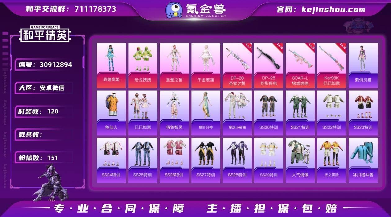 【AZH2440】安卓 微信【千金淑猫 恐龙拽拽 俏兔智灵 满级圣堂之誓DP-28】4粉装-4特效枪-0载具-2粉色飞行器-48384热力值-6王牌印记-120套装-151枪皮 【热门品类】:套装-龟仙人 【粉色套装】:粉装-恐龙拽拽,角色-圣堂之誓,角色-千金淑猫,角色-异瞳寒姬 【粉色枪皮等级】:SCAR-L-锦绣绵绵(五级),Kar98K-巳巳如意(五级),DP-28-圣堂之誓(七级),DP-28-豹影疾电(五级) 【粉色枪皮】:SCAR-L-锦绣绵绵,Kar98K-巳巳如意,DP-28-圣堂之誓,DP-28-豹影疾电 【粉色飞行器】:拂晓神骑飞行器 【粉色降落伞】:绝对恒星降落伞,潮汐统领降落伞,洛神天依降落伞,仲夏莫吉托降落伞,未来歌姬降落伞,萌酷奶龙降落伞,圣堂之誓降落伞,夜幕颂歌降落伞,小叽联名款降落伞,猪猪侠降落伞,江南烟雨降落伞,幻彩电音降落伞,异瞳寒姬降落伞,炫彩糖果降落伞 【稀有套装】:套装-龟仙人,套装-巳巳如意,套装-雪国风尚,套装-炫彩糖果,角色-俏兔智灵,角色-猎影月神,套装-星渊小夜曲,角色-紫俏灵猫 【稀有枪皮】:AKM-彩虹符号,AKM-破晓战魂,AKM-霓虹街区,AKM-龙的传人,M16A4-幻世战舞者,SCAR-L-炫彩节奏,SCAR-L-玉兔迎春,M416-糯团青竹,M416-蓝色火焰,GROZA-田园牧歌,GROZA-荧海星豚,AUG-天降萌叽,AUG-耀粉歌者,AUG-绝对恒星,QBZ-彩虹符号,M762-天降萌叽,M762-彩虹符号,Mk47-妙红点点,Mk47-洛神天依,G36C-星穹咏叹调,AC-VAL-天降萌叽,AC-VAL-快闪甜心,蜜獾-天降萌叽,蜜獾-娇憨猪猪,UZI-啾咪啾咪,UZI-娇憨猪猪,UZI-红色方程式,UMP45-生命誓言,UMP45-蓝色火焰,Vector-焰鹰斗篷,Vector-炎氏战神,Vector-生命誓言,Vector-田园牧歌,汤姆逊-天降萌叽,汤姆逊-炫彩节奏,汤姆逊-耀粉歌者,P90-快闪甜心,Kar98K-梦幻火箭,Kar98K-星穹咏叹调,AWM-焰鹰斗篷,AWM-圣堂之誓,SKS-未来歌姬,SKS-...