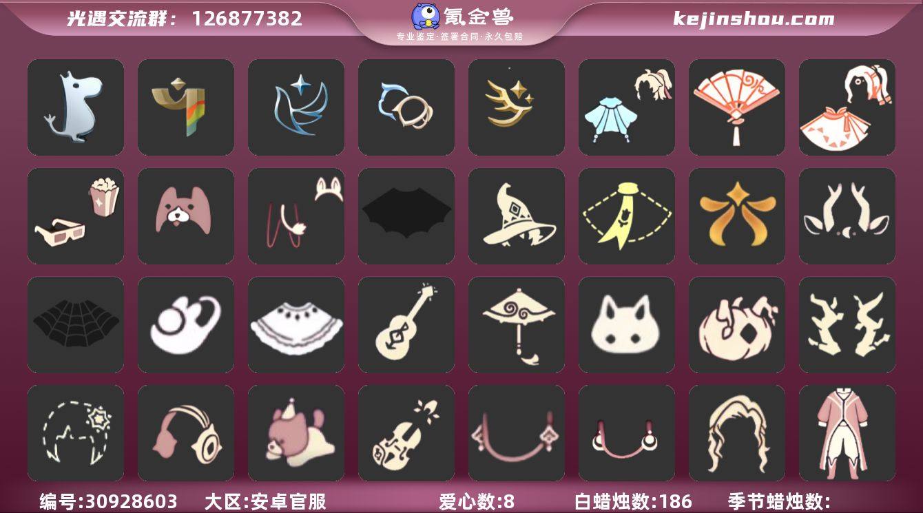 账号类型: 邮箱账号 季节已毕业: 姆明季,彩染季,青鸟季,双星季,迁徙季 完成地图: 晨岛,云野,雨林,霞谷,暮土,禁阁 礼包: 蝙蝠套,巫师,围巾,欧若拉之翼,九色鹿角,蜘蛛斗,兔子鞋,白绒金,吉他,红伞,兔子,南瓜,枯角,雪花,彩虹耳机,奥利奥,小提琴,新年耳钉,满月耳坠,姆明饰品套装,衔福献瑞礼包,献瑞折扇礼包,小狗周年发饰,青衫落拓礼包,周年影院套餐礼包 裤子: 武士裤,搓澡巾,击剑裤,妮妮裙子,青鸟尊贵蓬头裤子 面具: 辉光羚羊面具 面饰: 红耳机,青鸟毕业面饰 发型: 虚荣 头饰: 蓝色音乐会,平顶帽 斗篷: 海洋斗,绿芽,彩染围巾斗篷,青鸟毕业斗篷 配饰: 雨伞,姆明抱枕,小红伞,二重奏挂画 亮点: 【优质装备】:武士裤,青鸟尊贵蓬头裤子(蓝色燕尾服),妮妮裙子(妮妮长裙),姆明抱枕,小红伞(姆明红伞)(姆明大伞),二重奏挂画(合奏挂画),姆明季,辉光羚羊面具,彩染季,青鸟季,青鸟毕业面饰(青鸟面饰),青鸟毕业斗篷(青鸟斗篷),双星季,蝙蝠套(蝙蝠斗篷)(南瓜头),欧若拉之翼,小提琴(凯旋提琴),衔福献瑞礼包(衔福献瑞斗篷),红耳机,围巾(小王子斗篷)(小王子围巾),九色鹿角(神鹿祝福头饰)(神鹿祝福礼包),蜘蛛斗(蛛丝斗篷)(蛛网斗篷),吉他(音韵吉他)(白吉他),红伞(瑞气纸伞),姆明饰品套装(姆明尾巴),巫师(巫师帽),白绒金(白雪斗篷),枯角(巫树犄角),彩虹耳机,奥利奥(周年庆抱枕),晨岛,云野,雨林,霞谷,墓土(暮土),禁阁,兔子鞋(兔子拖鞋),献瑞折扇礼包,小狗周年发饰(小狗周年头饰),青衫落拓礼包,周年影院套餐礼包,兔子(玉兔头饰)(玉兔发饰)(兔子发饰),满月耳坠,南瓜(冥龙南瓜),雪花(雪花发夹),新年耳钉(金鳞耳饰)