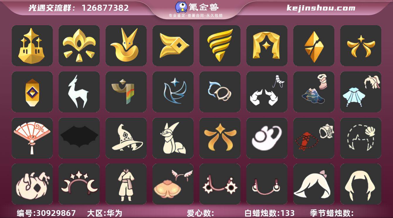 13季10翼白枭巫师帽玫瑰花欧若拉之翼王子围巾绊爱瑞雪斗篷圣诞鹿角跑鞋九色鹿角 资源:蜡烛453 爱心30 红烛110翼 已毕业地图:全图毕业 毕业季节:梦想季 集结季 小王子季 潜海季 表演季 破晓季 追忆季 夜行季 拾光季 归巢季 九色鹿季 彩染季 青鸟季 毕业物品:凤凰面具 凤凰斗篷 队长面具 双耳锅帽 胜利号角 连帽斗篷 小王子发型 小王子套装 玫瑰花 小王子套装 单边小辫 暗红斗篷 氧气面具 黄眉企鹅面具 燕尾斗篷 白枭发型 双翼遥鲲斗篷 冥龙斗篷 肩带 追忆之书 棕熊面具 绒毛斗篷 粗框眼镜 季卡相机 西部帽 五塑彩羽发 五塑彩带斗 九色鹿丸子头 九色鹿丝带裤 九色鹿飞天斗篷 彩染围巾斗篷 辉光羚羊面具 青鸟面饰 青鸟斗篷 稀有礼包:王子围巾 欧若拉之翼 蛛网斗篷 暖冬瑞雪 白雪斗篷 绊爱套装 青衫落拓礼包 欧若拉之声 花憩茶桌 冥龙南瓜 巫师帽 大桔大利 鲤跃龙门 雪花发夹 贝壳发夹 玉兔头饰 星月头冠 九色鹿角 圣诞鹿角 悦动跑鞋 热门裤子:背带裤 遥鲲长袍 绑带舞服 奔月长袍 海洋武士裤 白棉裤 搓澡巾 紧身连体衣 武士裤 小王子服 小丑服 红色流珠裙 探险燕尾服 热门面具:矮人面具 狐狸面具 黄鼠狼面具 凤凰面具 潜海面具 黄眉面具 一字眉 棕熊面具 盲僧眼罩 向导面具 青鸟季面具 龙头 玫瑰花面具 黑脸 热门发型:海藻头 爆炸头 大胡子 小飞象 雨妈 卡卡平菇 龙骨 指甲盖箬笠 还是讲 公主头 粗辫 水母头 书虫 总裁头 正太头 高马尾 明制帽 郡主头 斗笠 虚荣 小王子头 白枭 圆环发辫 留辫蘑菇头 彩色脏辫 彩羽发型 兔子头 樱花头 遥鲲发型 巫师帽 猫猫头 女巫发型 圣诞帽 绊爱发型 光头 热门头饰:尖角牛仔帽 牛仔帽 飞羽发饰 橘子发饰 珊瑚发饰 花环 雪花发饰 晃悠悠 红耳机 辫子发...