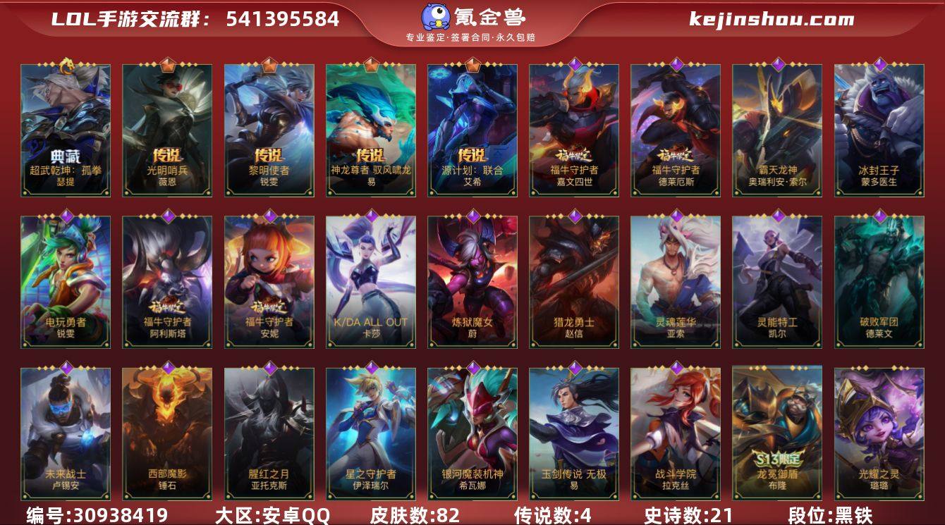 【LDC1515】102英雄/82皮肤/1典藏/4传说/21史诗/超凡大师/超武乾坤:孤拳/光明哨兵薇恩/神龙尊者 驭风啸龙/源计划:联合/黎明使者锐雯/腥红之月剑魔/战斗学院拉克丝/猎龙勇士赵信/霸天龙神龙王/K/DA ALL OUT卡莎/福牛守护者安妮/灵魂莲华亚索/灵能特工天使/未来战士卢锡安/银河魔装机神龙女/炼狱魔女/福牛守护者皇子/冰封王子/玉剑传说 无极/福牛守护者诺手/破败军团德莱文/福牛守护者牛头/电玩勇者(锐雯)/暗星韦鲁斯/星之守护者EZ/西部魔影锤石/s1光耀之刃/s2光耀之芒/s3光耀之灵/s4光耀之心/s5绯金魅影/s6绯金丽刃/s7绯金战斧/s9王牌舰长/s10王牌上将/S11王牌勇将/s11王牌司令/s12龙冕先锋/s13龙冕御盾/S19冠翎征服者/死亡骑士/海上霸主/苍穹之光薇恩/光耀之心发条/国王/光耀之刃蛮王/秘密特工/龙冕先锋赵信/死亡绽放/末路狂花/光耀之芒金克丝/狮心/龙冕御盾布隆/王牌舰长/冠翎征服者 尼菈/刀锋女王/绯金魅影(可升级)/银色之牙/绯金丽刃(可升级)/西部牛仔亚索/偶像歌手/风纪委员/宗师级钓鱼训练师/末世天使/烧烤女神/兔宝宝提莫/熊猫/缪斯女神/光耀之灵/黯黑魔龙龙女/女警官/双城之战蔚/孤胆英豪/王牌上将皇子/海牛骑士/超级英雄/超武乾坤:电弧/战争血统/单身贵族/西部牛仔女枪/热血班长/末路教父/金牌主播/绯金战斧(可升级)/极地女神/黑暗骑士寒冰/王牌司令艾希/科学狂人/鲛泥座人/莲花之令刀妹/冲浪高手/光执事EZ/光明之锤杰斯/王牌勇将/铁血狙击手/鳄霸