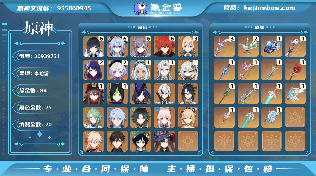 【YSYT614】60级/84黄/女主/25个五星角色/20个五星武器/满命夜兰/满命甘雨/钟离/枫原万叶/闲云/魈/温迪/三命琴/埃洛伊/二命七七/克洛琳德/二命雷电将军/满命刻晴/白术/一命纳西妲/一命提纳里/一命玛拉妮/一命那维莱特/神里绫人/珊瑚宫心海/莫娜/阿蕾奇诺/宵宫/一命胡桃/满命迪卢克/飞雷之弦振/若水/终末嗟叹之诗/阿莫斯之弓/万世流涌大典/千夜浮梦/天空之卷/和璞鸢/天空之脊/护摩之杖/波乱月白经津/苍古自由之誓/天空之刃/四风原典/天空之傲