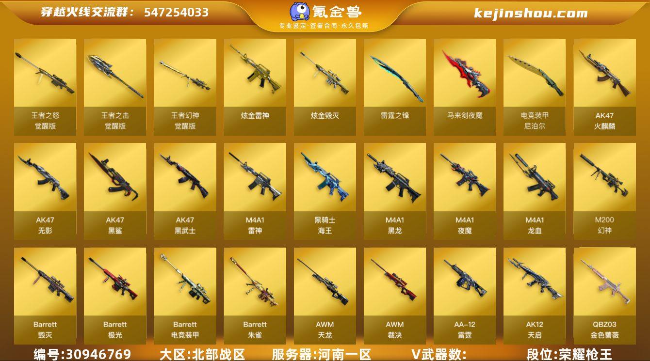 YXB 特价秒杀【河南一区】【可二次实名】【可排位】【荣耀枪王】【CF点16183】【V武器数85】【6烈龙】【死亡之眼】【斯泰尔-蝴蝶】【夜魔套装X1套】【雷霆套装X1套】【传说光耀】【M200-幻神】【王者幻神-觉醒版】【AWM-裁决】【Scar Light-白虎】【QBZ03-金色蔷薇】【M4A1-夜魔】【加特林-炼狱】【RPK-盘龙】【魂·炼狱-玩具枪】【汤姆逊-烈龙】【斯泰尔-蝴蝶】【死亡之眼】【沙漠玫瑰】【王者-魅影】【魅影】【M4A1-雷神】【雷神-星空】【雷神-暗月】【M4A1-雷神音效卡】【AK47-火麒麟】【火麒麟-CFSTAR】【火麒麟-雷神】【M4A1-黑龙】【M4A1-黑龙-361】【黑龙-能量核心】【Barrett-毁灭】【毁灭耀金皮肤】【Barrett-毁灭音效卡】