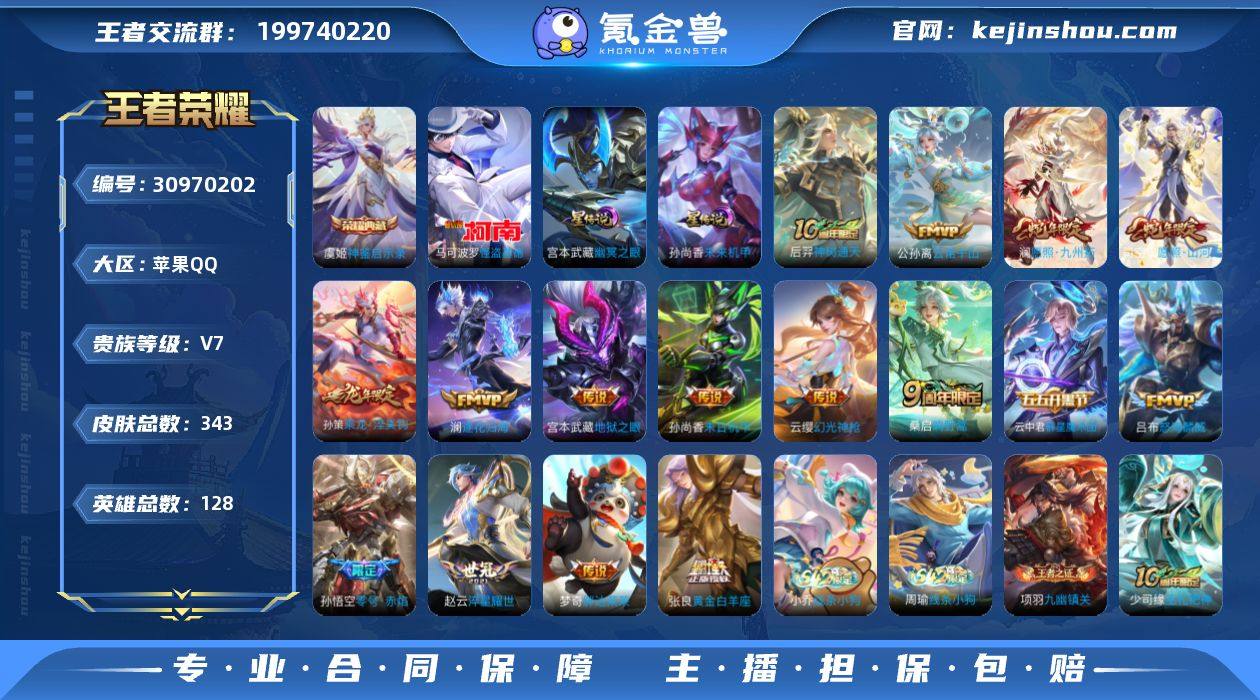 出王者荣耀安卓Q区账号,贵族7(46609积分,差3391积分升V8),343款皮肤(含1荣耀典藏、16传说、88史诗、108限定),68级精英收藏家·典藏之影,128个英雄 可小刀