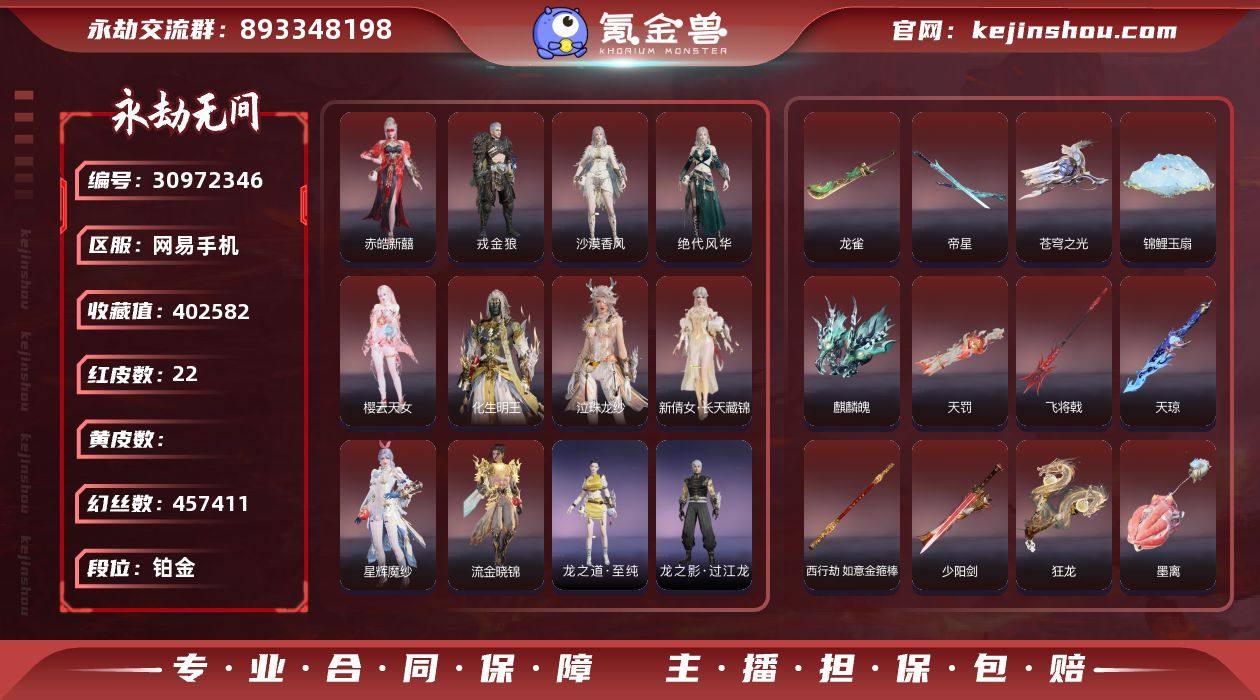 WJ4395,网易手机,2月27日可换绑,三人段位铂金5,45万幻丝,22红,616金,销兵镝遗,御祥云,绿野守护竹韵悠,凶虎,神君印,神乌造像,炎烈珠,墨离,麒麟魄,少阳剑,帝星,龙雀,飞将戟,如意金箍棒,天琼,锦鲤玉扇,狂龙,天罚,苍穹之光,赤皓新囍,星辉魔纱,化生明王,长天藏锦,戎金狼,樱云天女,泣珠龙纱,绝代风华,沙漠香风,流金晓锦,至纯,过江龙,翠影,天狐,白鹿,塑梦钥匙,劫涛潮,学宫之杖,判官笔,腾云歌,夜华朝,云溪仙子,少林,萍之缘,暗沼摩罗,黄庭道,禄运玉霄,祸津素盏,浣烟纱,福瑞天泽,赤阳天狐,雪铃绮歌,活动中心手机绑定无法解绑,