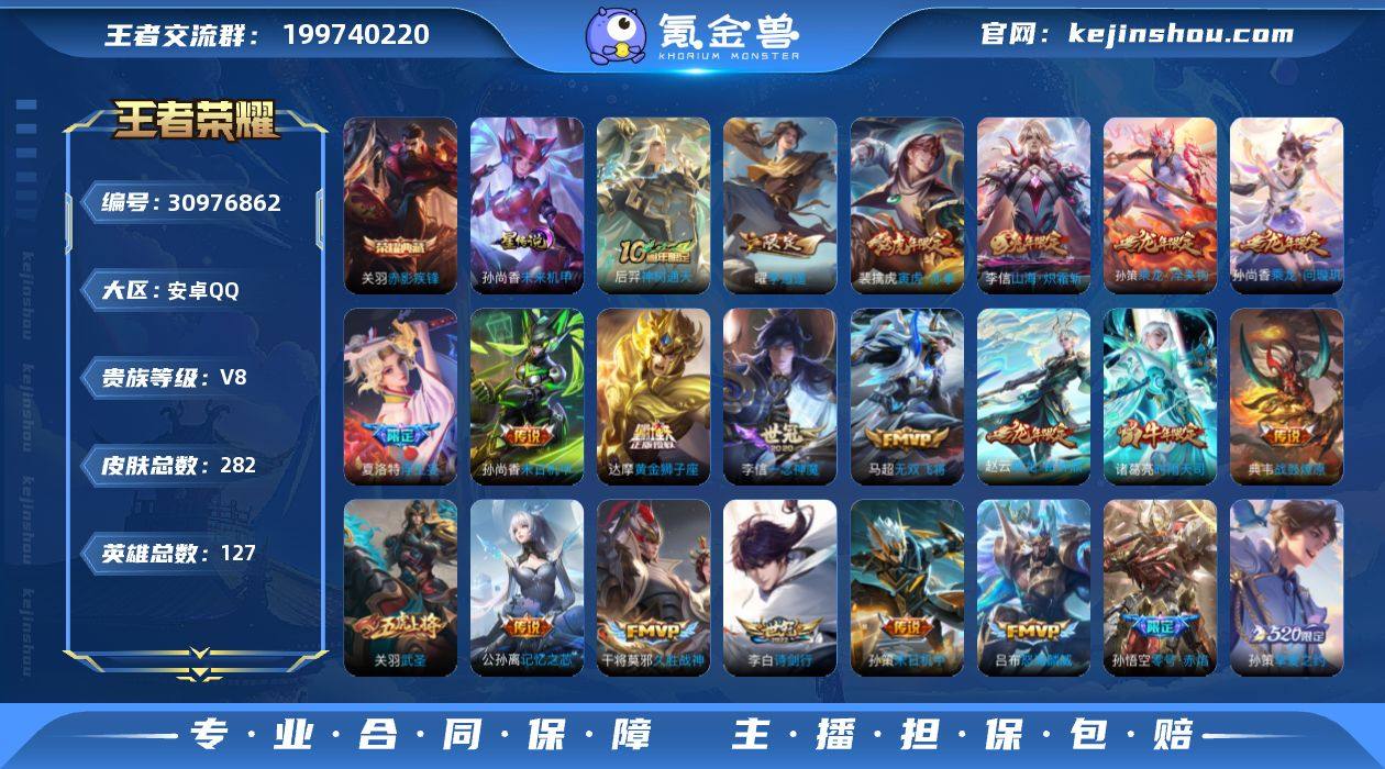 账号亮点:李信金标万战 对抗路40段 关羽赤影疾锋 后羿神树通天,典韦战鼓燎原,孙尚香乘龙问璇玑,孙策乘龙淬吴钩,赵云乘龙铭钟鼎,公孙离记忆之芯,夏洛特浮生妄,李信山海炽霜斩,吕布怒海麟威,李白诗剑行,马超无双飞将,孙策挚爱之约,孙策末日机甲,裴擒虎寅虎赤拳,曜李逍遥 ,诸葛亮时雨天司,虞姬启明星使,孙悟空零号赤焰,关羽武圣,李信一念神魔,干将莫邪久胜战神,达摩黄金狮子座,孙尚香末日机甲642-5 【英雄全皮】:孙权全皮,李信全皮,夏洛特全皮,影全皮 【荣耀典藏】:关羽赤影疾锋 【传说皮肤】:后羿神树通天,典韦战鼓燎原,孙尚香乘龙问璇玑,孙策乘龙淬吴钩,赵云乘龙铭钟鼎,公孙离记忆之芯,夏洛特浮生妄,李信山海炽霜斩,吕布怒海麟威,李白诗剑行,马超无双飞将,孙策挚爱之约,孙策末日机甲,裴擒虎寅虎赤拳,曜李逍遥 ,诸葛亮时雨天司,虞姬启明星使,孙悟空零号赤焰,关羽武圣,李信一念神魔,干将莫邪久胜战神,达摩黄金狮子座,孙尚香末日机甲 【限定皮肤】:蒙犽顽岩魄,大乔绒语心约,姜子牙天穹之誓,狄仁杰阴阳师,廉颇寅虎御盾,赵云皇家上将,妲己时之彼端,庄周高山流水,高渐离玩趣恶龙,阿轲迷踪丽影,芈月幻夜卜梦,吕布御风骁将,元歌云间偶戏,元歌无心,马可波罗暗影游猎,狄仁杰魔术师,狄仁杰万华元夜,达摩星际陆战队,达摩沙漠行僧,项羽海滩派对,老夫子醍醐杖,关羽武圣,程咬金演武夺筹,刘邦夺宝奇兵,韩信傲雪梅枪,王昭君凤凰于飞,兰陵王金庭之子,花木兰默契交锋,亚瑟潮玩骑士王,孙悟空大圣娶亲,孙悟空零号赤焰,孙悟空孙行者,牛魔奔雷神使,李元芳银河之约,李元芳云中旅人,虞姬启明星使,钟馗神迹守卫,钟馗驱傩正仪,雅典娜黎明之约,蔡文姬繁星吟游,鬼谷子原初探秘者,鬼谷子五谷丰年,诸葛亮时雨天司,黄忠火炮绅士,苏烈千军破阵,百...