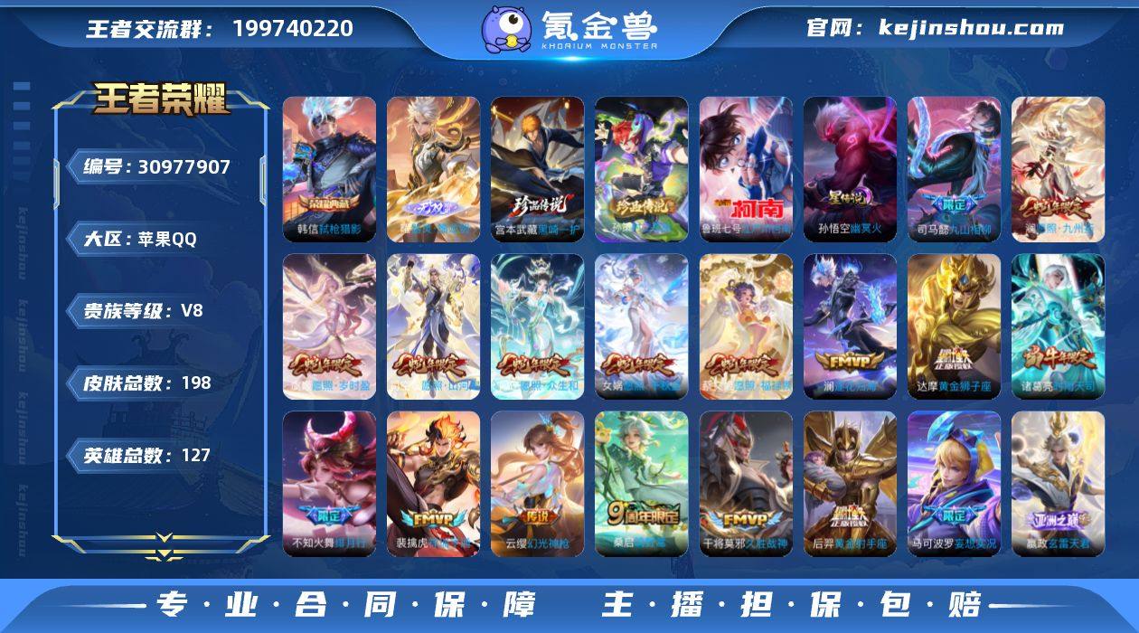 AHC71122,1天幕/1星元/安全提醒需长时间登录认证解除,苹果Q-V8-最强王者段位-127英雄-198皮肤-1典藏皮肤-1无双-3珍品传说-24传说-56史诗 【荣耀典藏】:韩信弑枪猎影 【无双皮肤】:曜器灵螭龙剑 【珍品传说】:鲁班七号江户川柯南,孙策时之奇旅,宫本武藏黑崎一护 【传说皮肤】:司马懿九山相柳,司空震愿照山河定,女娲愿照千秋盛,妲己愿照众生和,澜愿照九州拓,蔡文姬愿照福禄聚,虞姬愿照岁时盈,云缨幻光神枪,裴擒虎祥瑞亨通,嬴政玄雷天君,桑启鸣野蒿,澜逐花归海,上官婉儿妄想奇谈,马可波罗妄想实况,不知火舞绯月行,赵云淬星耀世,李元芳飞鸢探春,诸葛亮时雨天司,虞姬启明星使,干将莫邪久胜战神,虞姬云霓雀翎,达摩黄金狮子座,后羿黄金射手座,孙悟空地狱火 【限定皮肤】:大乔绒语心约,姜子牙天穹之誓,李白谪仙醉月,狄仁杰阴阳师,赵云皇家上将,墨子神迹守卫,妲己时之彼端,孙尚香蔷薇恋人,元歌云间偶戏,马可波罗妄想实况,狄仁杰魔术师,狄仁杰万华元夜,项羽海滩派对,老夫子航海奇遇记,程咬金演武夺筹,不知火舞绯月行,亚瑟潮玩骑士王,李元芳银河之约,虞姬启明星使,钟馗驱傩正仪,鬼谷子原初探秘者,诸葛亮时雨天司,弈星混沌棋,沈梦溪星空之诺,明世隐疑决卦,裴擒虎李小龙,裴擒虎擒涛扼浪,上官婉儿妄想奇谈,鲁班大师探海日志,桑启海盐诗旅,张良古海寻踪,鬼谷子天穹祈灯,沈梦溪龙舞盛年,曹操夜都魔契,李元芳蔬乡物语,周瑜熔金海岸 【年限皮肤】:诸葛亮时雨天司,司空震愿照山河定,女娲愿照千秋盛,妲己愿照众生和,澜愿照九州拓,蔡文姬愿照福禄聚,虞姬愿照岁时盈 【赛季限定】:弈星混沌棋,明世隐疑决卦,鬼谷子原初探秘者,狄仁杰万华元夜,程咬金演武夺筹,钟馗驱傩正仪,桑启海盐诗旅,裴擒虎擒涛扼浪,鲁班大师探海日志,张良古海寻踪,鬼谷子天穹祈...