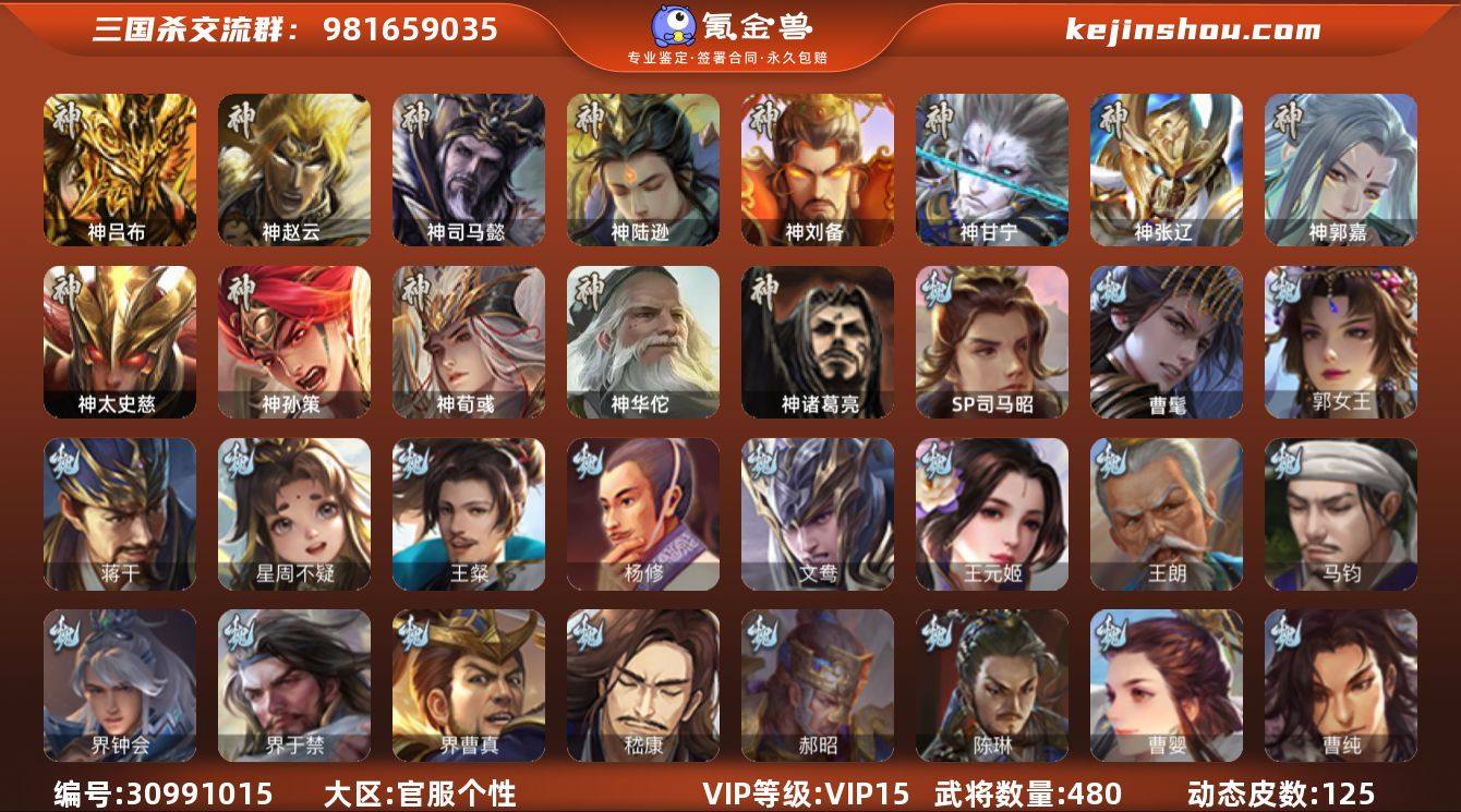 官阶:大将军;VIP等级:VIP15;史诗武将数量:93;动态皮肤数量:125;武将总数:480;史诗宝珠数量:4;将魂数量:11241;神将:16;魏国史诗武将:43;蜀国史诗武将:22;吴国史诗武将:13;群史诗武将:29