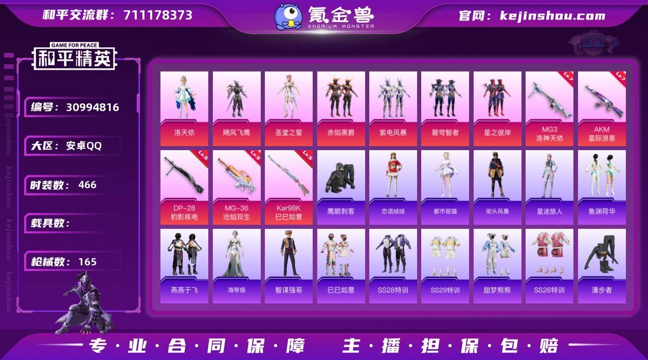【特价出售】安卓Q-7粉装5特效枪6热门122套装165枪皮 50932热力值 5印记 历史超级王牌2星 【7粉装】 圣堂之誓 洛天依 碧穹智者 星之彼岸 飓风飞鹰 紫电风暴 赤焰黑爵 【5特效枪】 Kar98K-巳巳如意 (5级) MG-36-沧焰双生 (5级) DP-28-豹影疾电 (5级) AKM-星际浪客 (7级) MG3-洛神天依 (7级) 【6热门】 龟仙人 鹰眼刺客 纯白誓言 粉红小猪 漫步者 英勇保护者