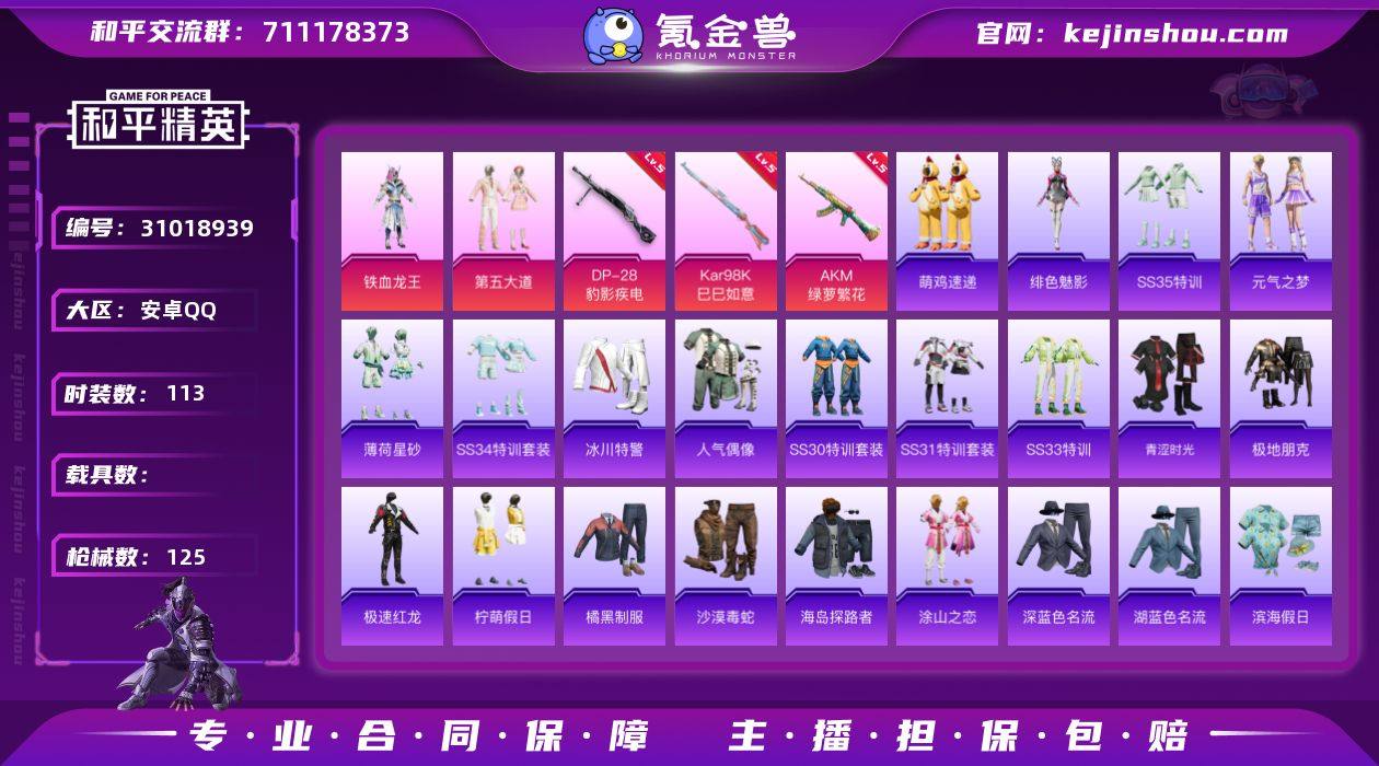 可二次实名【蜘蛛侠6特效枪2粉装 秒换绑不用等】 安卓Q区-42452热力值-105套装-148枪皮 【1稀有】 奇异狩猎者【2粉装】 角色-智耀战神 角色-绯穹魔姬【6特效枪】 Mk14-福马献瑞(5级) 蜜獾-荧海星豚(6级) AMR-智耀战神(5级) Kar98K-巳巳如意(5级) PKM-江南烟雨(7级) DP-28-豹影疾电(5级)【159热门】 鹰眼刺客 破蛋小黄鸡 白色伏地魔 SS27特训 SS26特训 SS25特训 SS24特训 SS23特训 UMP45-蓝色火焰 UMP45-炫光之旅 DBS-彩虹符号 M249-彩虹符号 呆萌铁蟹 M416-蓝色火焰 GROZA-异彩先驱 长空猛禽 夏日倾情 特训学院 青涩时光 霓虹街区 魅力单车 凛冬战士 猎鹰 黎明保卫者 竞技达人朋克 坚韧舞者 黄色运动 S686-奇异狩猎者 黑色伏地魔 纯真浪花 M24-奇异狩猎者 AKM-奇异狩猎者 汤姆逊-智耀战神 S1897-糯团青竹 创世·幻影 Mini14-绯穹魔姬 GROZA-紫矿核心 顶瓜瓜 冰河战士 MG-36-薄荷星砂 GROZA-福马献瑞 恋语绒绒 SS34特训 蜜獾-鸡智如我 S1897-荧海星豚 AWM-天降萌叽 福马献瑞 大橘大利 蓝冰羽 龙魂突击队 SS29特训 SS30特训 平底锅-花傲天 鱼渊荷华 SS28特训 PKM-啾咪啾咪 海盐绵绵冰 M16A4-冰河战士 燕燕于飞 SS31特训 SS33特训 SS32特训 紫幽梦 MG3-霓彩脉冲 粉黛兰香 SS36特训 热情海星 瑰梦爱神 老实芭蕉 墨青刃影 异域银装 粉恋花 战术大师 蜜獾-启元战纹 GROZA-荧海星豚 短管霰弹-星穹咏叹调 狙击之神 M416-糯团青竹 破片手榴弹-海盐豹豹 UMP45-海盐豹豹 Mk14-紫晶流影 Kar98K-彩虹符号 MK20-H-星途旅人 M417-玩趣呆呆 Mk14-薄荷星砂 平底锅-光之冒险 AUG-紫晶流影 AMR-鸡智如我 PKM-紫幽梦 Mk14-冰河战士 Kar98K-顶峰精英 GROZA-海盐豹豹 Mini14-香桃花海 Mk