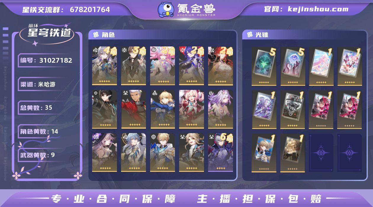 开拓等级:68 开拓者性别:女 总黄数:35 星轨专票:0 五星角色数:14 4命布洛妮娅,3命瓦尔特,2命昔涟,2命黄泉,2命姬子,0命丹恒·腾荒,0命Archer,0命Saber,0命风堇,0命遐蝶,0命大黑塔,0命星期日,0命杰帕德,0命彦卿 冬去煦至 五星光锥数:9 5精不息的演算,5精记忆永不落幕,1精爱如此刻永恒,1精愿虹光永驻天空,1精让告别,更美一些,1精行于流逝的岸,1精以世界之名,1精制胜的瞬间,1精如泥酣眠 邮箱状态:未绑定 卖家说:2+1黄泉和2+1昔涟2000累充武器 ,这一队随便打。多金欧号,记忆队