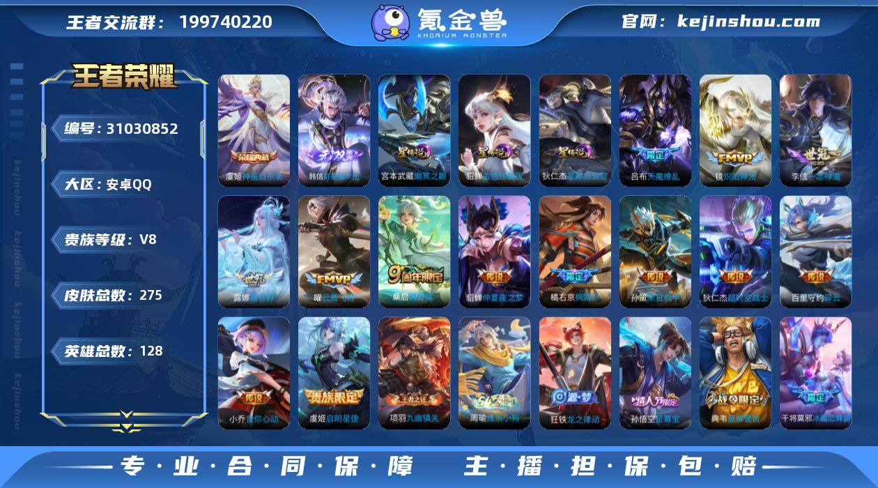 AHC40751,,至尊宝-3星元-1天幕,,安卓Q-V8-至尊星耀I段位-128英雄-275皮肤-1典藏皮肤-1无双-13传说-84史诗 【英雄全皮】:橘右京全皮 【荣耀典藏】:虞姬神鉴启示录 【无双皮肤】:韩信群星魔术团 【传说皮肤】:桑启鸣野蒿,露娜霜月吟,百里守约碎云,橘右京枫霜尽,孙策末日机甲,小乔音你心动,镜炽阳神光,虞姬启明星使,曜云鹰飞将,李信一念神魔,貂蝉仲夏夜之梦,吕布天魔缭乱,狄仁杰超时空战士 【限定皮肤】:蔡文姬夏日便利店,虞姬夏日便利店,姜子牙天穹之誓,狄仁杰阴阳师,赵云皇家上将,赵云龙胆,嬴政优雅恋人,鲁班七号狮舞东方,高渐离死亡摇滚,阿轲迷踪丽影,钟无艳超时空战士,白起夜都怪侠,芈月幻夜卜梦,吕布天魔缭乱,元歌云间偶戏,元歌无心,甄姬游园惊梦,甄姬落雪兰心,典韦蓝屏警告,马可波罗暗影游猎,狄仁杰魔术师,狄仁杰万华元夜,达摩沙漠行僧,项羽海滩派对,老夫子醍醐杖,程咬金演武夺筹,露娜一生所爱,刘邦夺宝奇兵,韩信逐梦之影,韩信傲雪梅枪,王昭君午后时光,兰陵王金庭之子,橘右京枫霜尽,孙悟空至尊宝,孙悟空孙行者,李元芳云中旅人,虞姬启明星使,钟馗驱傩正仪,杨玉环寅虎心曲,干将莫邪冰霜恋舞曲,雅典娜黎明之约,蔡文姬繁星吟游,鬼谷子原初探秘者,鬼谷子五谷丰年,黄忠火炮绅士,苏烈千军破阵,百里玄策原初追逐者,弈星混沌棋,梦奇顽趣,沈梦溪大漠名商,明世隐疑决卦,明世隐吟游魔法,裴擒虎李小龙,裴擒虎擒涛扼浪,狂铁电玩高手,云中君纤云弄巧,云中君时之祈愿,猪八戒西部大镖客,上官婉儿梁祝,鲁班大师探海日志,桑启海盐诗旅,艾琳女武神,艾琳流音漫舞,阿古朵江河有灵,张良古海寻踪,蒙恬荣光圣徽,鬼谷子天穹祈灯,沈梦溪龙舞盛年,鲁班七号蔬乡物语,李元芳蔬乡物语,刘邦剑破天穹,程咬金群星魔术团,韩信群星魔术团,镜青焰无...