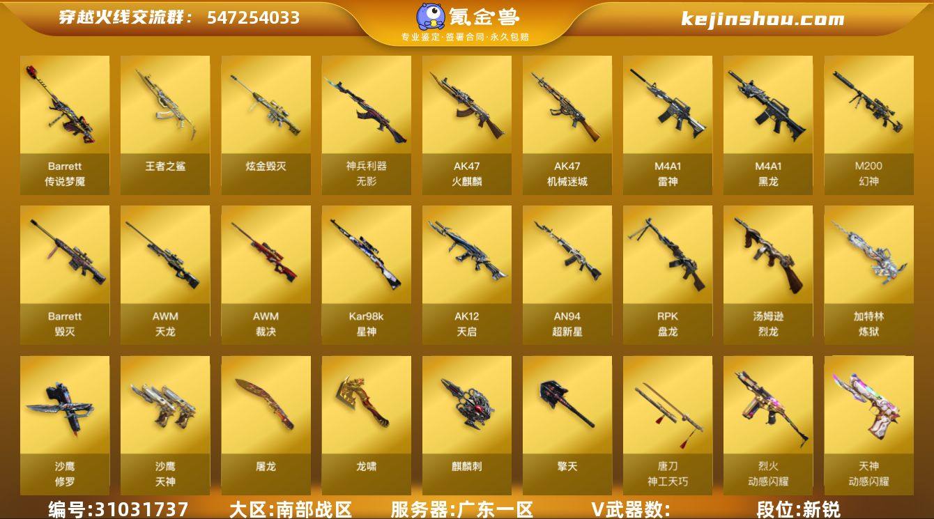 YXB 特价秒杀【广东一区】【不可二次实名】【可排位】【新锐1】【CF点1081】【V武器数44】【6烈龙】【异变清道夫】【死亡之眼】【神工天巧套装X1套】【传说梦魇】【M200-幻神】【Kar98K-星神】【星神-漫游】【AWM-裁决】【裁决-异化之源 皮肤】【白虎-AG-CFPLS20冠军】【白虎之魄-觉醒版】【加特林-炼狱】【RPK-盘龙】【炼狱-悦蓝-觉醒版】【汤姆逊-烈龙】【异变清道夫】【死亡之眼】【乔伊教练】【王者-瞳-闭月羞花】【王者炽天使】【王者零-华冠丽服】【M4A1-雷神】【雷神-动感闪耀 皮肤】【雷神-虎将】【雷神-能量核心】【雷神-星空】【AK47-火麒麟】【火麒麟-华夏之心】【火麒麟-战神关羽】【火麒麟-心动糖果】【火麒麟-CFSTAR】【M4A1-黑龙】【Barrett-毁灭】【毁灭耀金皮肤】【Barrett-毁灭音效卡】