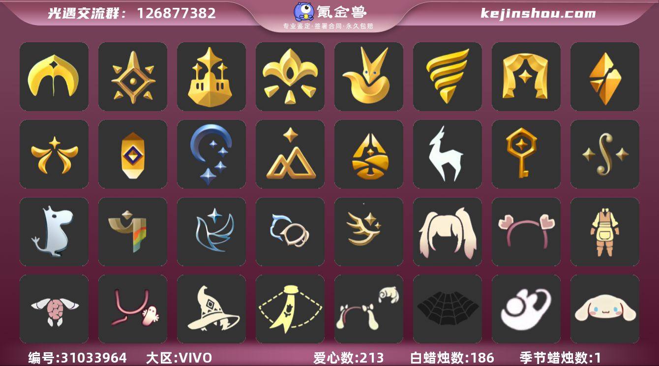 【A513】区服:VIVO服,登入方式:手机【22季卡】多季节毕业阿努比斯白枭跑鞋鹿角巫师帽绊爱福娃蝙蝠斗红伞秋千茶桌,蜡烛数量:186,爱心:213,当前身高1.781,最高身高1.227,最矮身高13.227,已经毕业地图:晨岛,云野,雨林,霞谷,暮土,禁阁,已经毕业季节:迁徒季,双星季,青鸟季,彩染季,姆明季,二重奏季,筑巢季,九色鹿季,归巢季,拾光季,夜行季,追忆季,欧若拉季,破晓季,表演季,潜海季,王子季,集结季,梦想季,预言季,圣岛季,稀有礼包:疯女巫长裙,跃动跑鞋,神鹿祝福头饰,彩虹耳饰,彩虹耳机,金鳞耳坠,巫术犄角,圣诞鹿角,温暖绒帽,蛛网朋克,巫师帽,南瓜头,绊爱套装,贝壳,雪花发卡,玉兔,四叶草头饰,心心相印发饰,tgc,创始人礼包,小王子围巾,星球夹克,新春福娃,蜘蛛斗篷,蝙蝠斗篷,白雪斗篷,暖冬瑞雪,粽子,灯笼,阳伞,祥云瑞气纸伞,献瑞折扇礼包,狐狸背包,情人秋千,情人跷跷板,情人小船,花憩茶几,茶桌,冥龙南瓜,冰雪水晶球,周年庆抱枕,热门物品:阿努比斯,蝴蝶结,公主头,正太头,樱花头,猫猫头,搓澡巾,武士裤,白棉裤,背带裤,花环头饰,宴会围巾,虚荣发型,红耳机,黄鼠狼面具,红狐狸面具,花瓣斗篷,灯泡斗篷,红金斗篷,白金斗篷,白鸟斗篷,吉他,尤克里里,高音钢琴,笛子,铃铛,雨伞