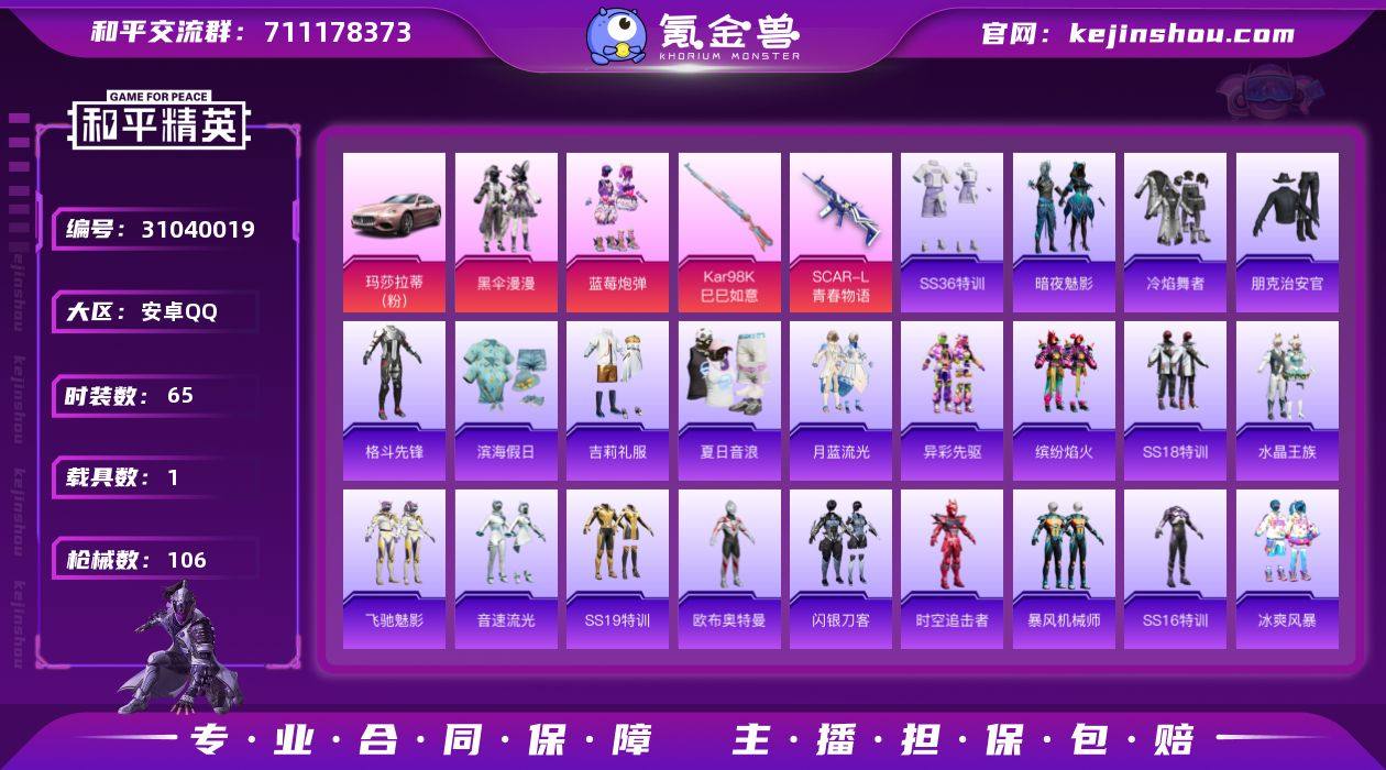 可改实名 2粉2枪1载具 玛莎拉蒂粉 蓝莓炮弹 黑伞漫漫 异彩先驱 冰爽风暴 瑞龙福将 暗夜影魅 闪银刀客 时空追击者 暴风机械师 萌趣颜团子 青春冒险家 6级SCAR-L-青春物语 1级Kar98K-巳巳如意 烈焰拳霸头盔 星之彼岸背包 王牌印记6 热力值31482 K30660 和平精英买号包赔带二次营地ID:756819983
