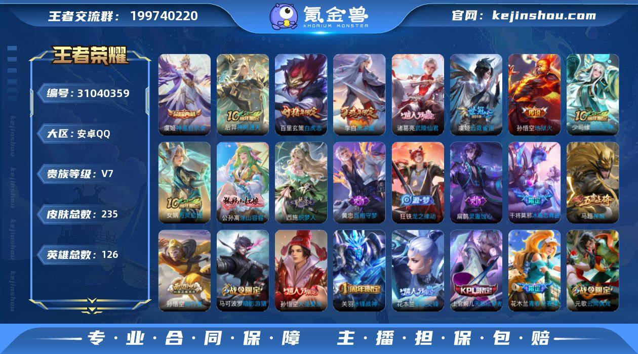 贵族等级:V7 典藏皮肤数:1 珍品无双皮肤数:0 无双皮肤数:0 珍品传说皮肤数:0 传说皮肤数:6 史诗皮肤数:73 皮肤数:235 英雄数:126 段位:绝世王者