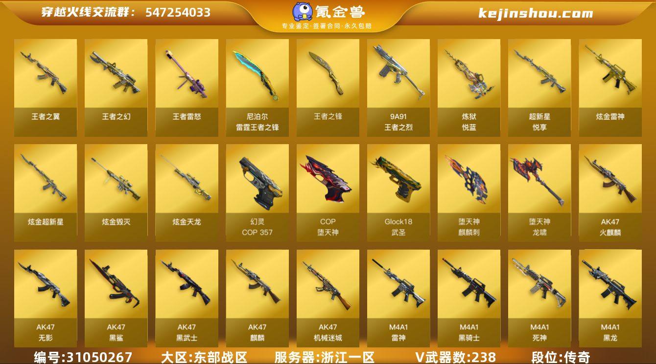 【CFC54】238V/102级/荣耀元首/27王者/8炫金/6英雄/QBZ03-金色蔷薇/Scar Light-白虎/HK417-朱雀/M4A1青龙/M200-幻神/死亡之眼/Kar98k-星神/Cat-刀锋/毒蜂/M4A1-黑骑士/汤姆逊-烈龙/RPK-盘龙/加特林-炼狱/雷神-小红/USP雷暴/COP-堕天神/COP 357-幻灵/沙鹰-修罗/龙啸-荣耀世冠/金刚伞/炫金天龙/炫金毁灭/炫金雷神/炫金超新星/炼狱-悦蓝/超新星-悦享/王者之幻/王者之翼/王者雷怒/王者之烈/王者之锋/雷霆王者之锋/AK47-火麒麟音效卡/M4A1-雷神音效卡/M4A1-黑龙音效卡/M4A1-黑骑士音效卡/Barrett-毁灭音效卡/Barrett-极光音效卡/AWM-裁决音效卡/雷神-能量核心/雷神-星空/M4A1-雷神CFS 2019/火麒麟-冠军之心/火麒麟-华夏之心/火麒麟-轻羽皮肤/黑骑士-暗月/炼狱-星空/毁灭-荣耀之怒/毁灭-星空/毁灭-战神张飞/毁灭-风暴/AWM-天龙-传奇70KG/屠龙-荣耀之锋/王者-瞳-闭月羞花/王者之瞳/王者春/王者玲珑/零/葵/樱/瞳/炫/影豹/铁骑荣耀/职业选手/天龙-曼陀罗/火麒麟-灵狐/M4A1-雷神-精英刀锋/M37-葵/COP-旗袍/迷你生化手雷/闪光弹-小乔/闪光弹-貂蝉/高爆手雷-大乔/6烈龙/6盘龙/5炼狱/神圣爆裂者/机甲撕裂者/神圣爆裂者-末日/阐释者/激光毁灭者/VEPR-12-金魔/6黑骑士/M4A1-幻灵/幻灵之锋/柯尔特-电竞装甲/M4A1-夜魔/破空枪刃-夜魔/马来剑夜魔/麒麟刺-堕天神/龙啸-堕天神/斩神刀-雷暴/M4A1-雷霆/M4A1-武圣/Glock18-武圣/荣耀世冠-龙啸/M4A1-雷神/M4A1-黑龙/M4A1-玫瑰精灵/M4A1-死神/AK47-麒麟/AK47-无影/AK47-火麒麟/AK47-黑武士/AK12-天启/AN94-超新星/AWM-天龙/Barrett-毁灭/Barrett-极光/AWM-裁决/M4A1-龙血/AK47-机械迷城/AA-12-雷霆/Barrett-朱雀/AK47-黑鲨/M4A1-猎神/M4A1-千变/AK-47-猩红传说/AK47-B-常胜将军/沙鹰-天神/麒麟刺/擎天/龙啸/屠龙