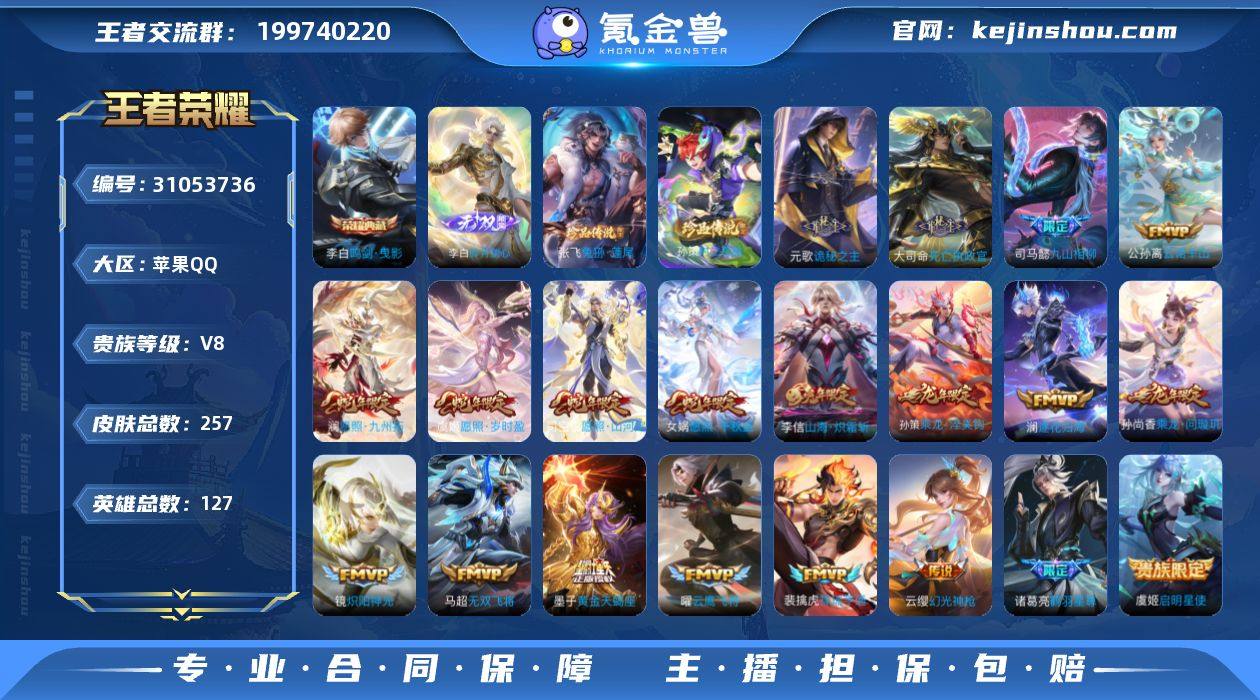 苹果Q-V8-永恒钻石I段位-127英雄-257皮肤-1典藏皮肤-1无双-2珍品传说-21传说-68史诗HZ261293 【英雄全皮】:司马懿全皮,海诺全皮 【荣耀典藏】:李白鸣剑曳影 【无双皮肤】:李白碎月剑心 【珍品传说】:孙策时之奇旅,张飞兔狲蓬尾 【传说皮肤】:后羿神树通天,元歌诡秘之主,大司命死亡执政官,司马懿九山相柳,公孙离云诺千山,司空震愿照山河定,女娲愿照千秋盛,澜愿照九州拓,虞姬愿照岁时盈,云缨幻光神枪,裴擒虎祥瑞亨通,墨子黄金天蝎座,孙尚香乘龙问璇玑,孙策乘龙淬吴钩,澜逐花归海,诸葛亮鹤羽星尊,李信山海炽霜斩,马超无双飞将,镜炽阳神光,虞姬启明星使,曜云鹰飞将 【限定皮肤】:大乔绒语心约,姜子牙天穹之誓,狄仁杰阴阳师,赵云皇家上将,扁鹊奇幻香踪,芈月幻夜卜梦,甄姬幽恒,马可波罗暗影游猎,马可波罗山海玄木吟,狄仁杰魔术师,狄仁杰万华元夜,达摩沙漠行僧,项羽海滩派对,程咬金演武夺筹,兰陵王金庭之子,后羿辉光之辰,李元芳云中旅人,虞姬启明星使,钟馗驱傩正仪,杨戬潮玩骑兵,干将莫邪胡桃夹子,鬼谷子原初探秘者,诸葛亮鹤羽星尊,黄忠火炮绅士,铠青龙志,苏烈千军破阵,沈梦溪大漠名商,裴擒虎李小龙,裴擒虎擒涛扼浪,云中君纤云弄巧,李信山海炽霜斩,上官婉儿梁祝,桑启海盐诗旅,阿古朵江河有灵,张良古海寻踪,高渐离燃音魔法,妲己灵卜魔法,鬼谷子天穹祈灯,李白碎月剑心,姬小满妄想食味,孙尚香乘龙问璇玑,孙策乘龙淬吴钩,沈梦溪龙舞盛年,鲁班七号蔬乡物语,李元芳蔬乡物语,刘邦剑破天穹,上官婉儿群星魔术团,程咬金群星魔术团,海诺心动手记,周瑜熔金海岸 【年限皮肤】:后羿辉光之辰,铠青龙志,甄姬幽恒,李信山海炽霜斩,马可波罗山海玄木吟,孙尚香乘龙问璇玑,孙策乘龙淬吴钩,司空震愿照山河定,女娲愿照千秋盛,澜愿照九州拓,虞姬愿照岁...